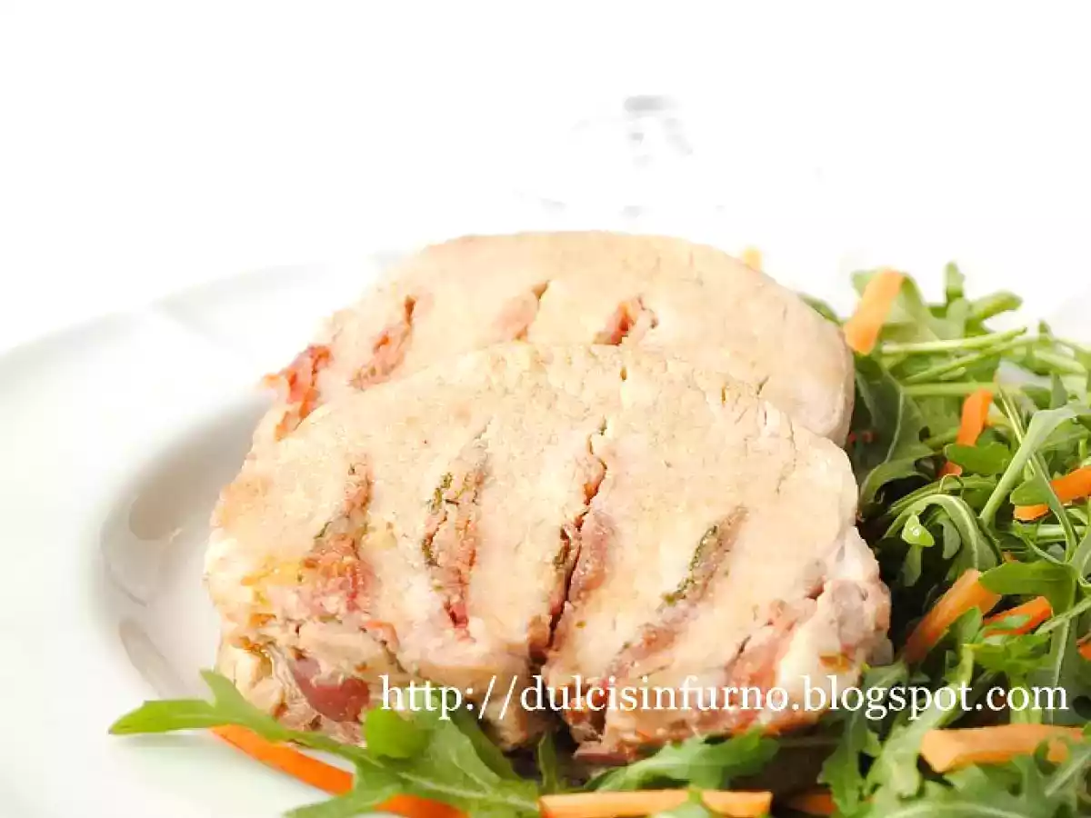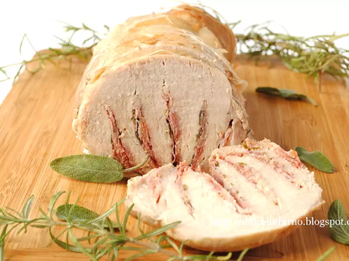 Arista di maiale farcita con pancetta PrecedenteProssimo Portata principalefacile1 h 10 m411 Kcal Invia questa ricetta ad un amico Stampa la ricetta Contatta l'autore della Ricetta Pubblica la foto di questa ricetta Ingredienti 10 1 kg di arista di maiale 150g di pancetta tesa 150g di pancetta arrotolata 3 spicchi di aglio rosmarino tritato q.b. salvia tritata q.b. olio d'oliva q.b. 1/2 bicchiere di vino bianco Costo stimato: 12.89Euros€ (1.29€/Porzioni)