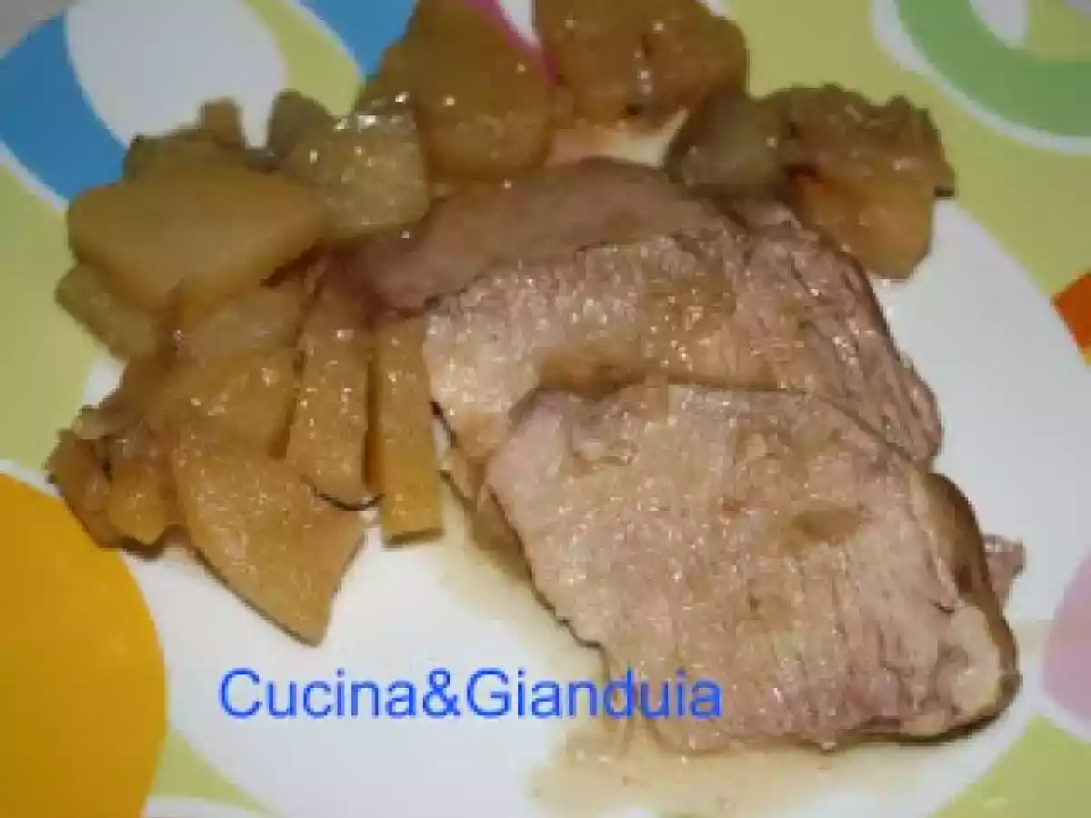 Arrosto di coppa di maiale con patate Portata principalefacile2 ore356 Kcal Invia questa ricetta ad un amico Stampa la ricetta Contatta l'autore della Ricetta Pubblica la foto di questa ricetta Ingredienti 4 600 g arrosto di coppa di maiale 1/2 cipolla rosmarino 1 spicchio aglio 2 cucchiai brodo vino q.b. patate q.b Costo stimato: 6.07Euros€ (1.52€/Porzioni)