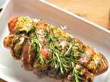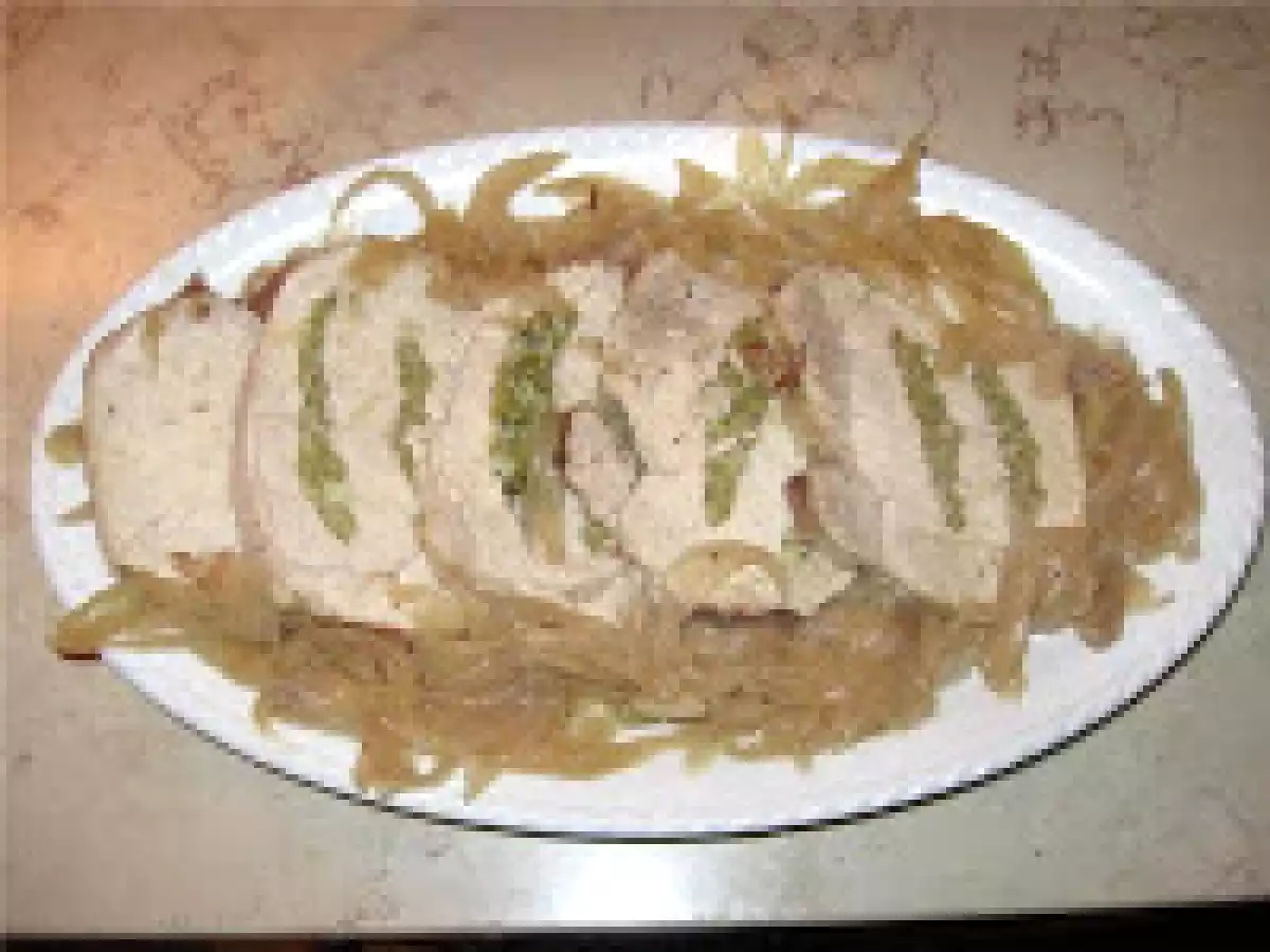 Arrosto di maiale farcito alle olive Portata principalefacile50 min Invia questa ricetta ad un amico Stampa la ricetta Contatta l'autore della Ricetta Pubblica la foto di questa ricetta Ingredienti 4 3 spicchi d' aglio 150 gr di olive verdi snocciolate 1 carrè di maiale disossato (circa 1kg) 4 cipolle 2 cucchiai di olio 1 foglia di alloro 1 bicchiere di vino bianco secco sale pepe