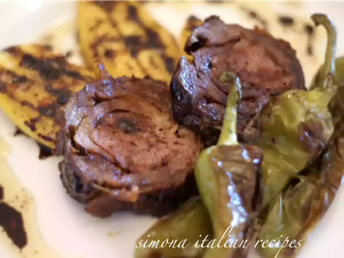 Arrosto di manzo ripieno di salsiccia con polenta abbrustolita e peperoni al vino bianco PrecedenteProssimo Portata principalefacile1 h 30 m Invia questa ricetta ad un amico Stampa la ricetta Contatta l'autore della Ricetta Pubblica la foto di questa ricetta Ingredienti 4 Arrosto alla salsiccia di CASCINA GAGGIOLI Polenta fatta in precedenza e tagliata a fette Peperoni verdi Vino bianco 1 spicchio grosso di aglio Olio,sale