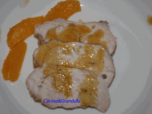 Arrosto di tacchino all'arancia Portata principalefacile1 ora Invia questa ricetta ad un amico Stampa la ricetta Contatta l'autore della Ricetta Pubblica la foto di questa ricetta Ingredienti 5 600 g di fesa di tacchino una tazzina da caffè di latte 1/2 bicchiere di vino bianco secco succo scarso di 2 arance scorza d'arancia cipolla carota farina olio d'oliva sale pepe