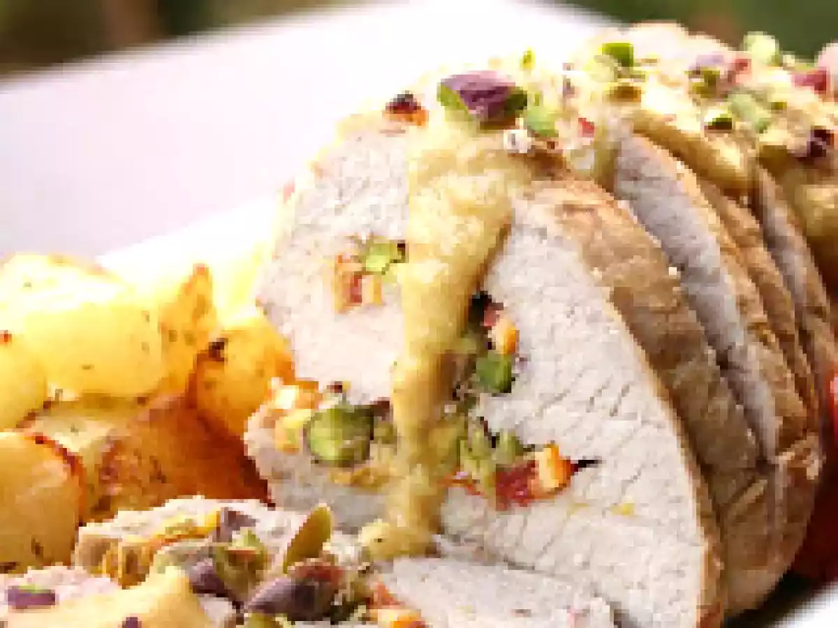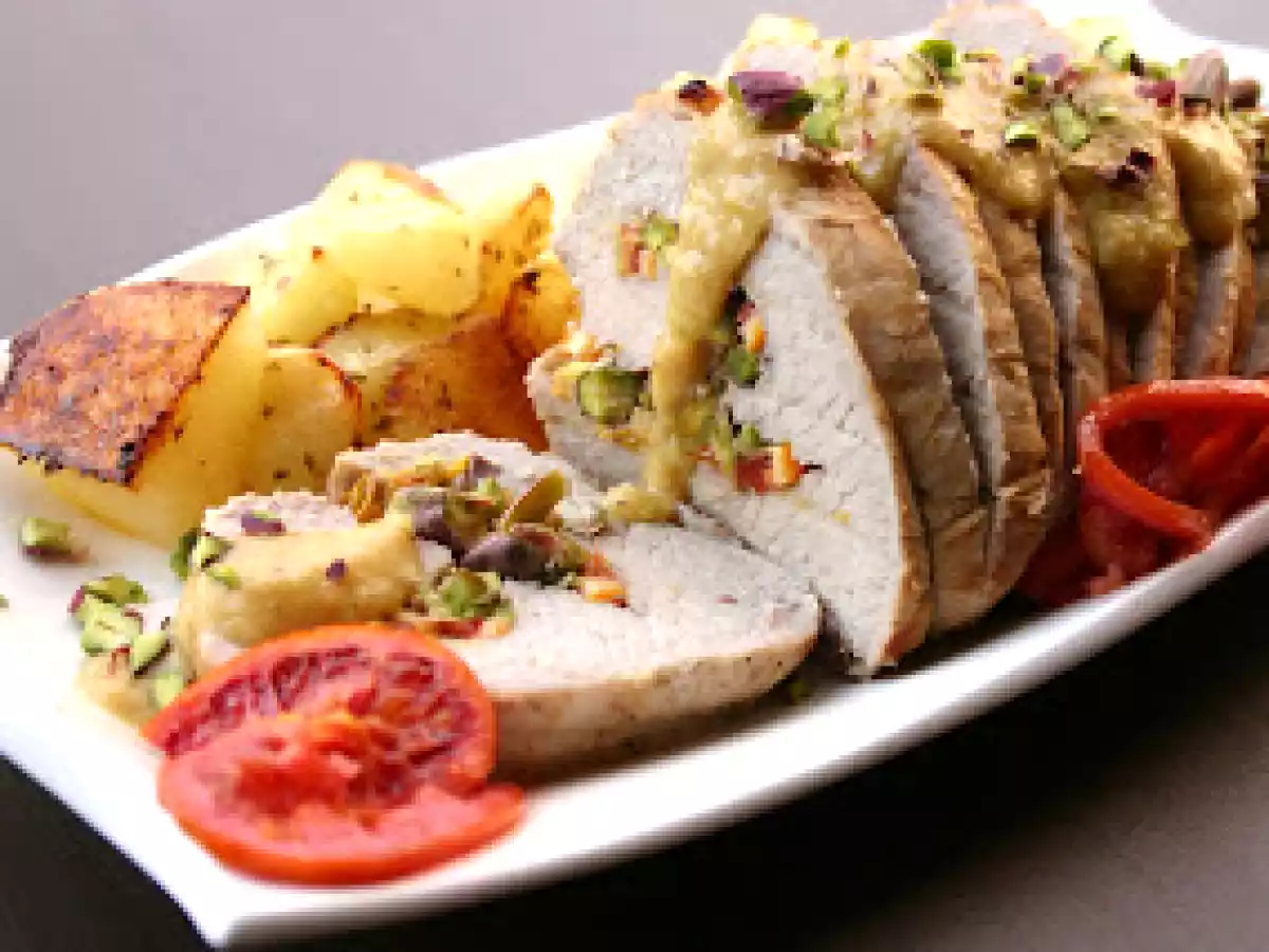 Arrosto di vitellina all'arancia rossa e pistacchio di bronte vota adesso PrecedenteProssimo Portata principalefacile1 ora Invia questa ricetta ad un amico Stampa la ricetta Contatta l'autore della Ricetta Pubblica la foto di questa ricetta Ingredienti 4 un filetto di vitellina da 700-800 g 100 g di pistacchio di Bronte 3 arance rosse 1 cipolla bianca olio, sale, pepe Vino bianco q.b. Zucchero di canna q.b.