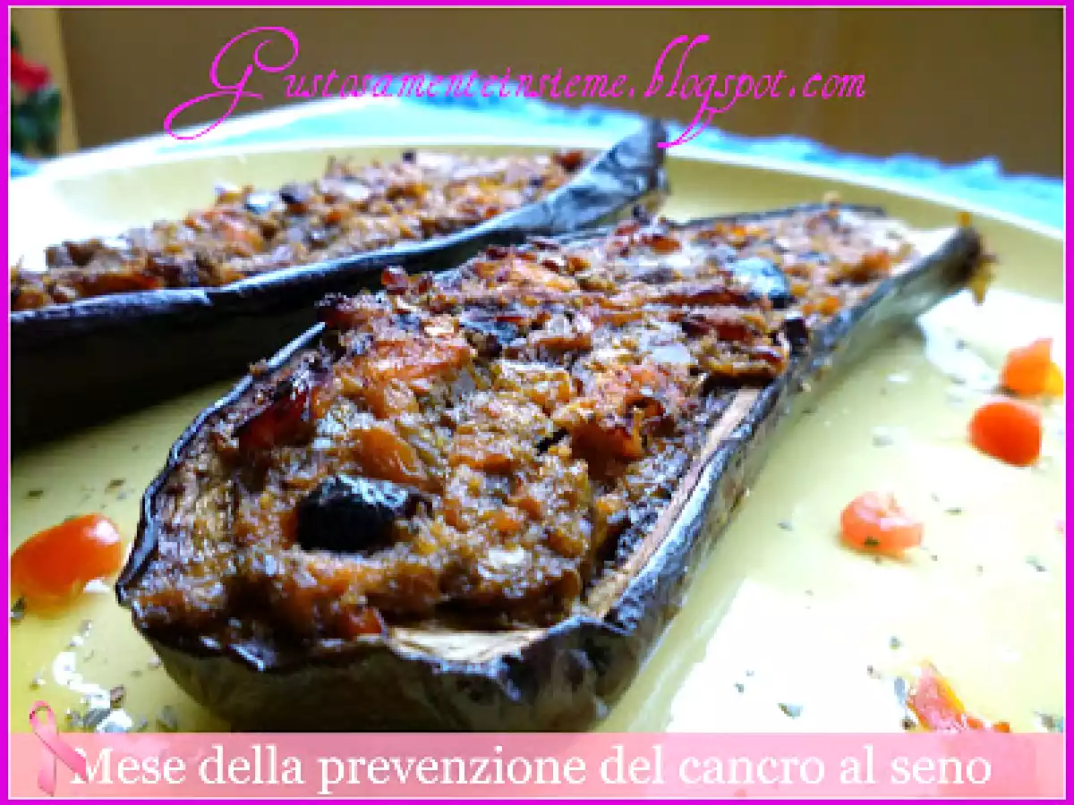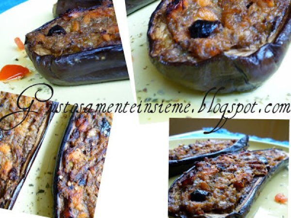 Barchette di melanzana al salmone e olive taggiasche vota adesso PrecedenteProssimo Portata principalefacile1 h 20 m541 Kcal Invia questa ricetta ad un amico Stampa la ricetta Contatta l'autore della Ricetta Pubblica la foto di questa ricetta Ingredienti 4 4 melanzane non troppo grandi 700 g di salmone a tranci 350 g di cipolla di Tropea 100 g di olive Taggiasche 2 cucchiai di pane grattugiato 20 dl di vino bianco secco un cucchiaio di succo di limone un pizzico di timo olio extravergine d'oliva meglio se dal sapore lieve sale pepe macinato fresco Costo stimato: 18Euros€ (4.5€/Porzioni)
