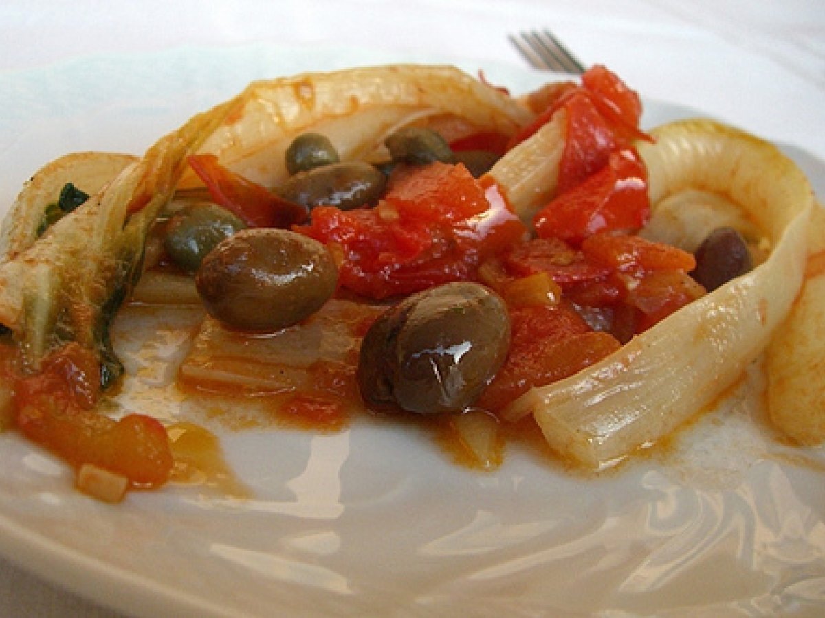 Bietole da costa con capperi e olive taggiasche Portata principalefacile55 min Invia questa ricetta ad un amico Stampa la ricetta Contatta l'autore della Ricetta Pubblica la foto di questa ricetta Ingredienti 10 Bietole da costa 1,500 kg 1/2 bicchiere di vino bianco secco 30 gr. olive taggiasche 1 cipolla piccola 1 spicchio aglio 1 cucchiaio di capperi sotto sale 400 gr. pomodori maturi prezzemolo sale e pepe olio extravergine