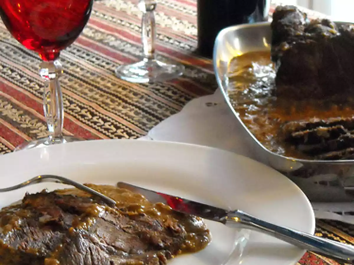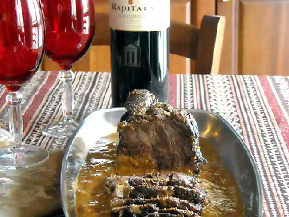 Tagliate la carne a fette, distribuitele sul piatto di portata e irroratele con il suo denso sugo.
