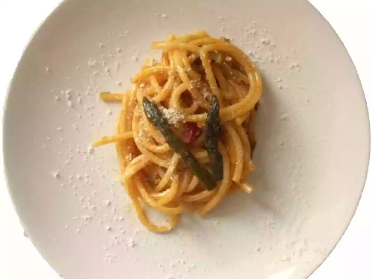 Bucatini agli asparagi violetti PrecedenteProssimo Portata principalemedia30 min Invia questa ricetta ad un amico Stampa la ricetta Contatta l'autore della Ricetta Pubblica la foto di questa ricetta Una ricetta facile e gustosa Ingredienti 4 280 gr. di bucatini 200 gr. di asparagi violetti 150 gr. di pomodorini pachino 1 uovo sale pepe olio evo parmigiano