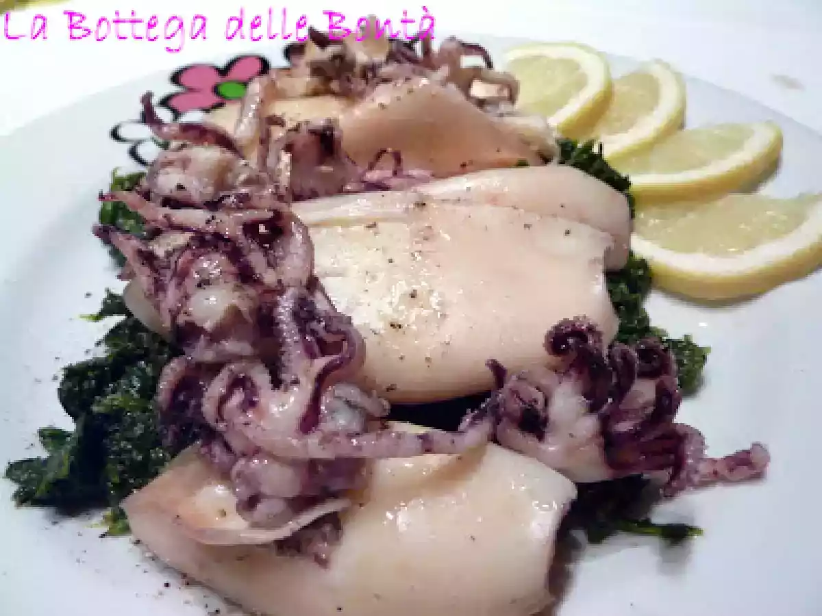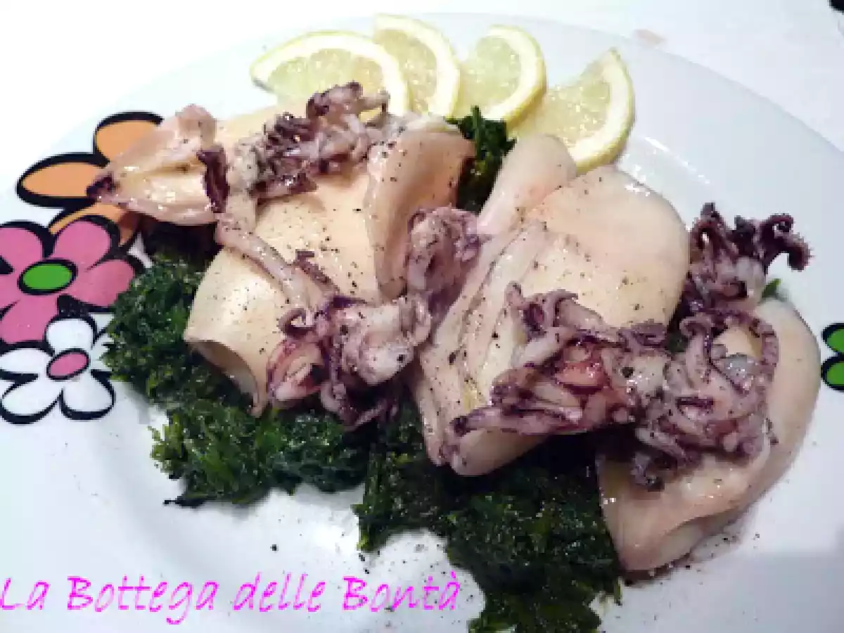 Calamaretti al vapore su letto di spinaci saltati vota adesso PrecedenteProssimo Portata principalefacile45 min513 Kcal Invia questa ricetta ad un amico Stampa la ricetta Contatta l'autore della Ricetta Pubblica la foto di questa ricetta Ingredienti 2 500 g di calamaretti nostrali 1 kg di spinaci freschi 2 spicchi di aglio in camicia 2 cucchiai di olio evo qualche goccia di limonesale pepe q.b. Costo stimato: 8.49Euros€ (4.24€/Porzioni)