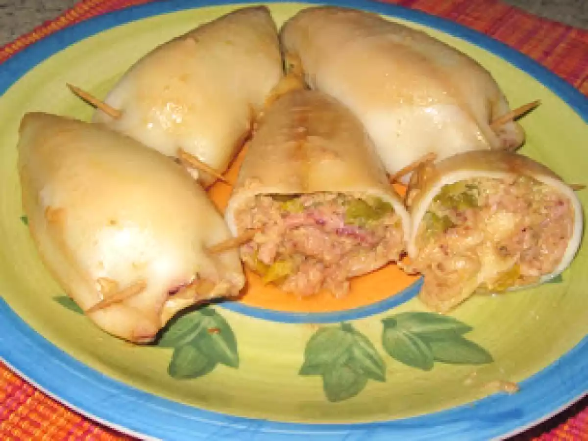 Calamari ripieni ai peperoni di susy! vota adesso Portata principalefacile45 min Invia questa ricetta ad un amico Stampa la ricetta Contatta l'autore della Ricetta Pubblica la foto di questa ricetta Ingredienti 5 1 kg di calamari 150 g di provolone mezzo piccante 1 uovo 300 g di peperoni cotti in padella pangrattato q.b. sale 1 aglio 1/2 bicchiere di vino bianco 1/2 bicchiere di marsala secco olio