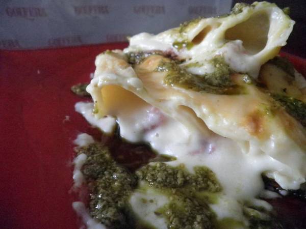 Cannelloni con besciamella pesto e prosciutto cotto naturì