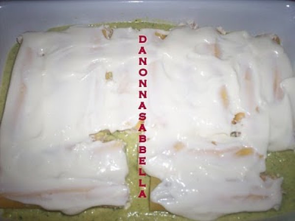 Cannelloni con ricotta e prosciutto in vellutata di zucchine