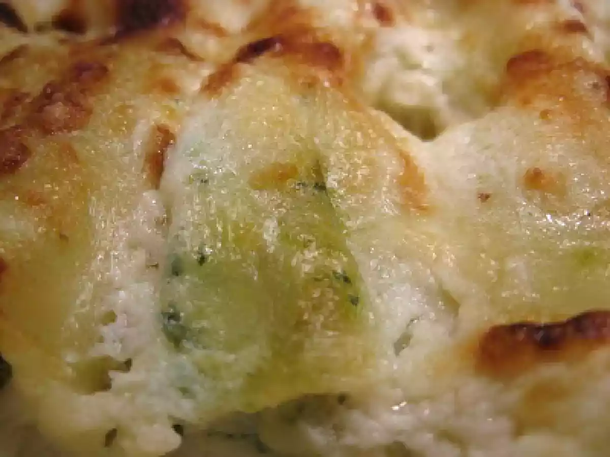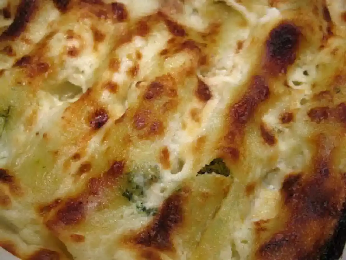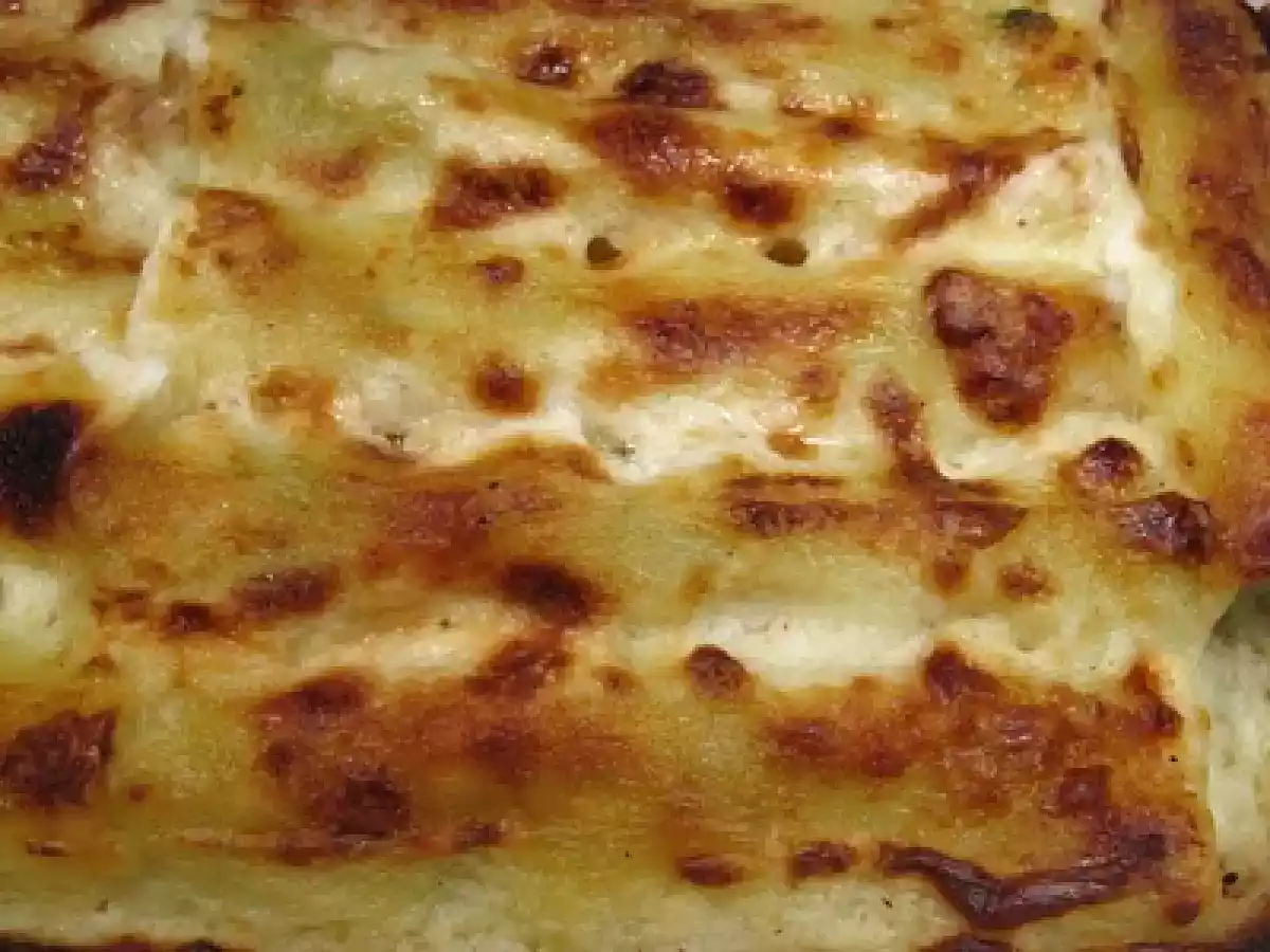 In modo da ottenere un composto omogeneo. - Cospargere abbondantemente con la bechamelle preparata in precedenza facendo fondere il burro in un pentolino medio a fondo spesso, aggiungendo un cucchiaio di farina 00 e quando questa si è amalgamato al burro e si è un po' rosolata aggiungere a filo il latte ben caldo.