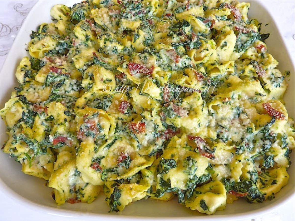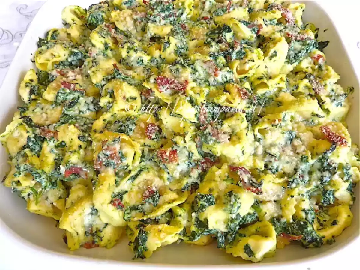 Cappelletti al forno con ricotta spinaci e prosciutto Portata principalefacile12 min488 Kcal Invia questa ricetta ad un amico Stampa la ricetta Contatta l'autore della Ricetta Pubblica la foto di questa ricetta Ingredienti 4 450 g di fresco Cappelletti ripieni di prosciutto 200g di ricotta 200 g di spinaci cotti già 100 ml di latte 100 g di prosciutto 50 g di parmigiano 1 spicchio di aglio Noce moscata Sale e pepe Costo stimato: 19.69Euros€ (4.92€/Porzioni)