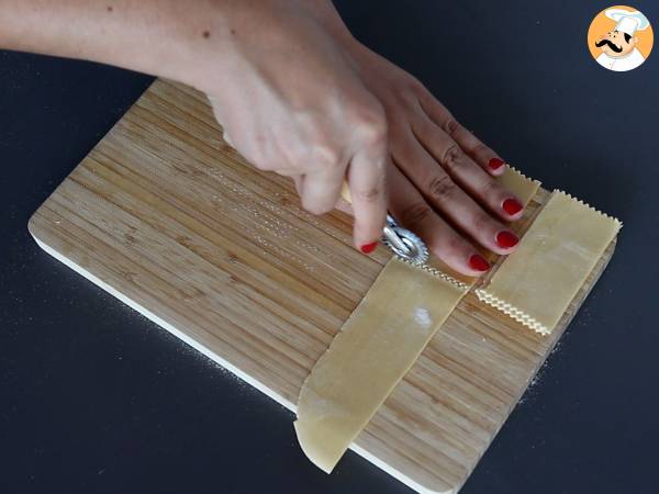 Prendete ogni striscia e ricavatene dei rettangoli con la rotella dentata di 6-7 cm di lunghezza.