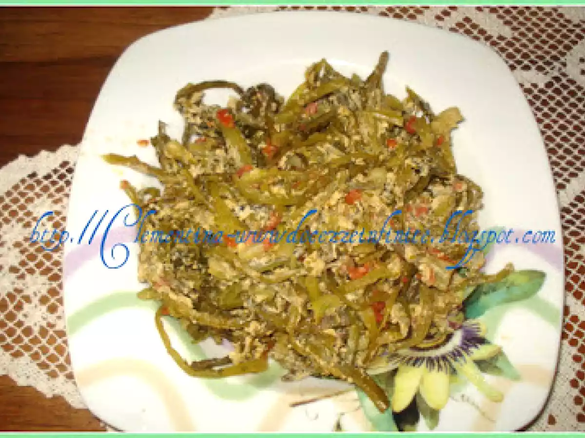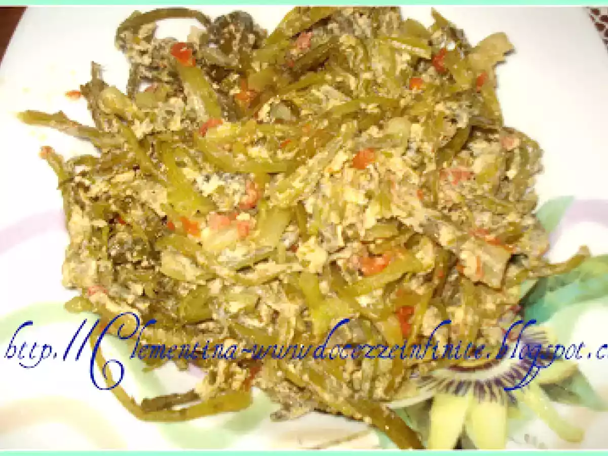 Cardoncelli con le uova PrecedenteProssimo Portata principalefacile45 min Invia questa ricetta ad un amico Stampa la ricetta Contatta l'autore della Ricetta Pubblica la foto di questa ricetta Ingredienti 4 1 kg cardoncelli 4-5 pomodorini uno spicchio di aglio, mezza cipolla 100 gr. di olio extravergie di oliva una manciata di formaggio pecorino grattugiato 2 uova 1 bicchiere di acqua sale