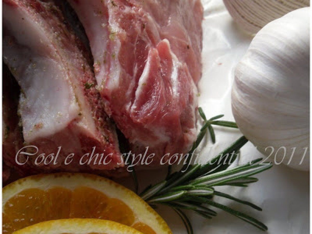 Carré di maiale al miele e arance PrecedenteProssimo Portata principalefacile50 min Invia questa ricetta ad un amico Stampa la ricetta Contatta l'autore della Ricetta Pubblica la foto di questa ricetta Ingredienti 4 1,5 kg di carrè di maiale con l'osso un mezzo bicchiere da vino di brandy 1 arancia non trattata per le fette 2 arance per il succo 4 rametti di rosmarino uno spicchio d'aglio olio extra vergine d'oliva pepe rosa due cucchiai di miele