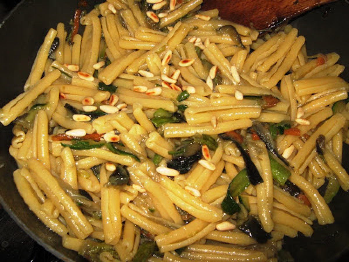 Casarecce con melanzane, zucchine e pinoli