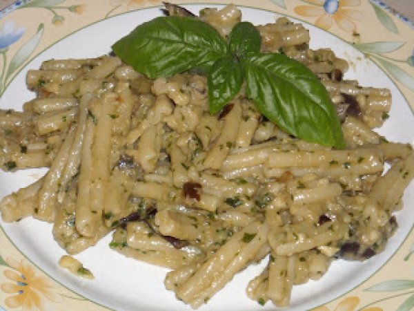 Caserecce al pesto di melanzane e mandorle PrecedenteProssimo Portata principalefacile35 min Invia questa ricetta ad un amico Stampa la ricetta Contatta l'autore della Ricetta Pubblica la foto di questa ricetta Ingredienti 4 400 gr di caserecce 1 melanzana mezza cipolla 50 gr di mandorle pelate 1 bel pugno di basilico 3 cucchiai di parmiggiano grattuggiato 4 cucchiai di olioextravergine d'oliva sale