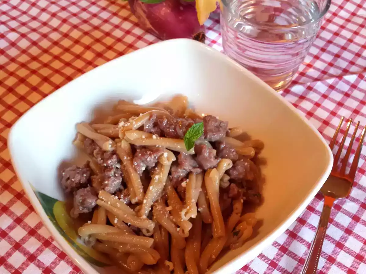 Caserecce integrali con salsiccia e cipolla rossa di tropea