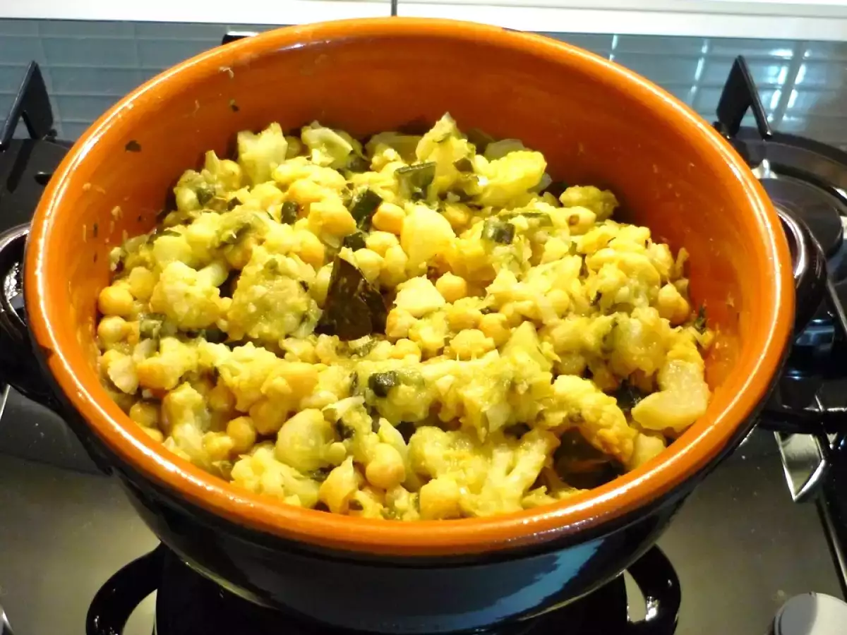 Ceci con cavolfiori e zucchine Portata principalemedia1 ora Invia questa ricetta ad un amico Stampa la ricetta Contatta l'autore della Ricetta Pubblica la foto di questa ricetta Ingredienti 4 Ingredienti per quattro persone 300 grammi di ceci 2 zucchine di media grandezza 600 grammi di cavolfiore uno spicchio d'aglio una cipolla un ciuffo di prezzemolo tre foglie di alloro un cucchiaino di curry un mazzetto di basilico tre cucchiai di olio extravergine d'oliva sale