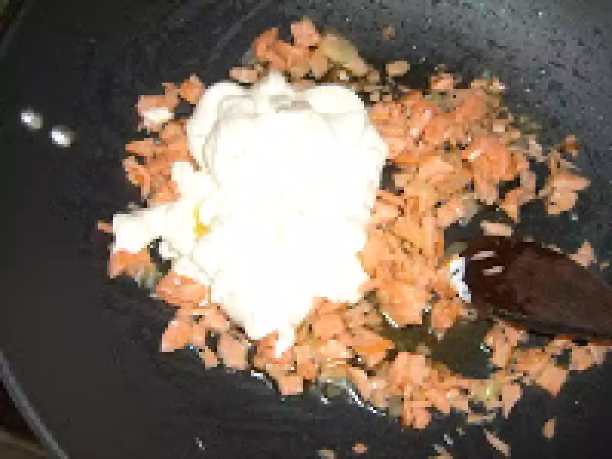 Cellentani con salmone e besciamella vota adesso PrecedenteProssimo Portata principalefacile20 min Invia questa ricetta ad un amico Stampa la ricetta Contatta l'autore della Ricetta Pubblica la foto di questa ricetta Ingredienti 2 350 g di cellentani 200 ml di besciamella 150 g di salmone affumicato 1 cucchiaio di cipolla tritata 40 g di burro 1 cucchiaio di olio di oliva 100 g di formaggio grattugiato sale e pepe due cucchiaio di vino bianco