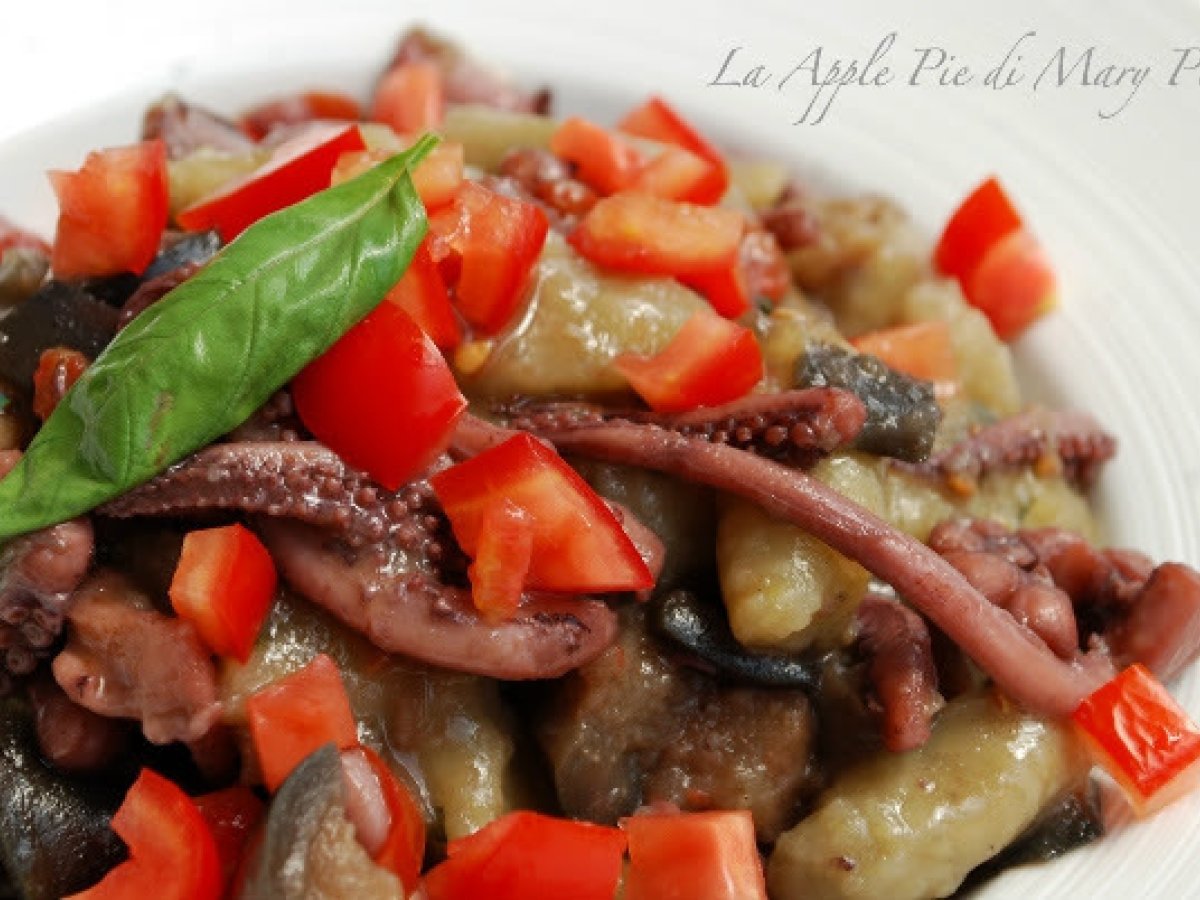 Chicche di patate e melanzane al sugo di moscardini e melanzane PrecedenteProssimo Portata principaleDifficile2 h 15 m Invia questa ricetta ad un amico Stampa la ricetta Contatta l'autore della Ricetta Pubblica la foto di questa ricetta Ingredienti 4 Per le chicche di patate: 1 kg patate farinose 1 grossa melanzana (la mia pesava 478 g) 150 g semola di grano duro 1 manciata di foglie di basilico 1 presa di sale Per il sugo: 2 melanzane lunghe 500 g moscardini 4 pomodori San Marzano maturi vino bianco secco brodo di pesce olio extravergine di oliva aglio, 2 spicchi 1 peperoncino qualche foglia di basilico sale