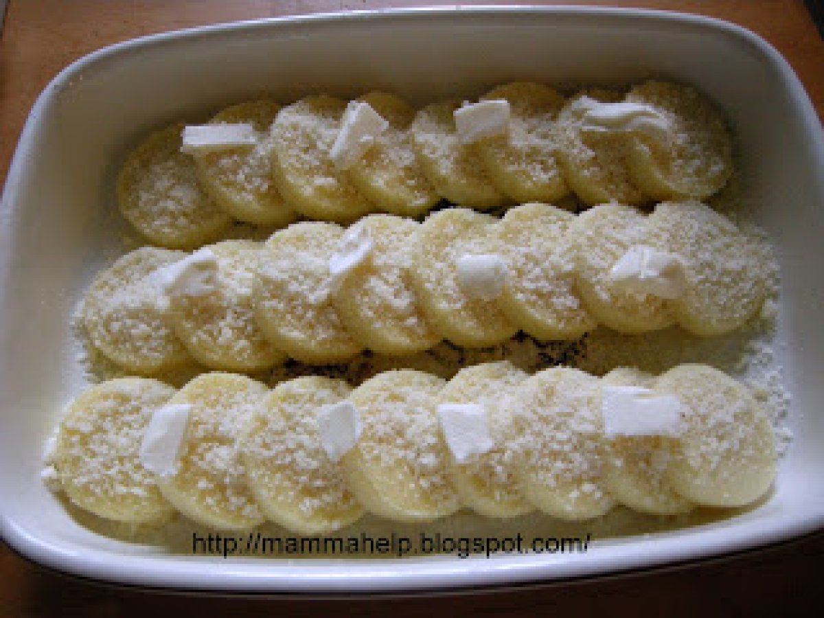 - Disponete i gnocchi in una teglia, sopra mettete dei fiocchetti di burro e del parmigiano, in forno a 180 gradi per circa 15-20 minuti, sono pronti quando hanno una bella crosticina.