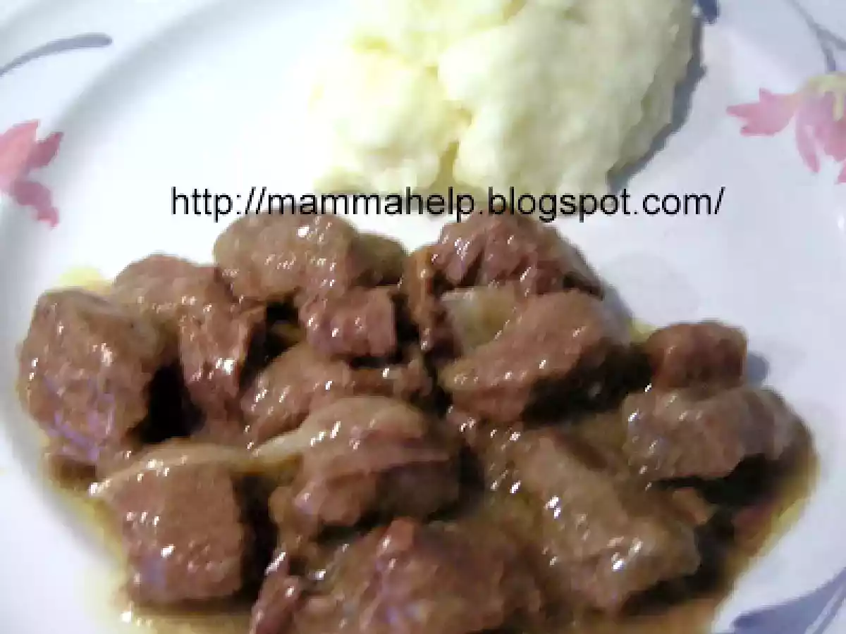 Come si fa ... lo spezzatino di carne in pentola a pressione e un purè facile e veloce Portata principalefacile1 h 20 m Invia questa ricetta ad un amico Stampa la ricetta Contatta l'autore della Ricetta Pubblica la foto di questa ricetta Ingredienti 5 0,5 kg di carne di manzo o di vitello. poca farina mezza cipolla 1 bicchiere di brodo sale e pepe, olio 2 patate medie poco latte 20 grammi di burro