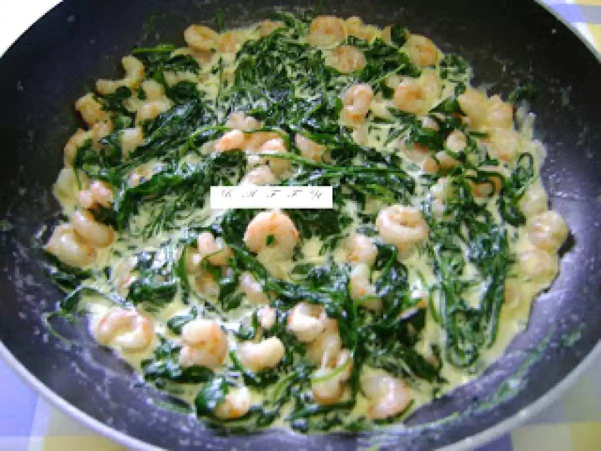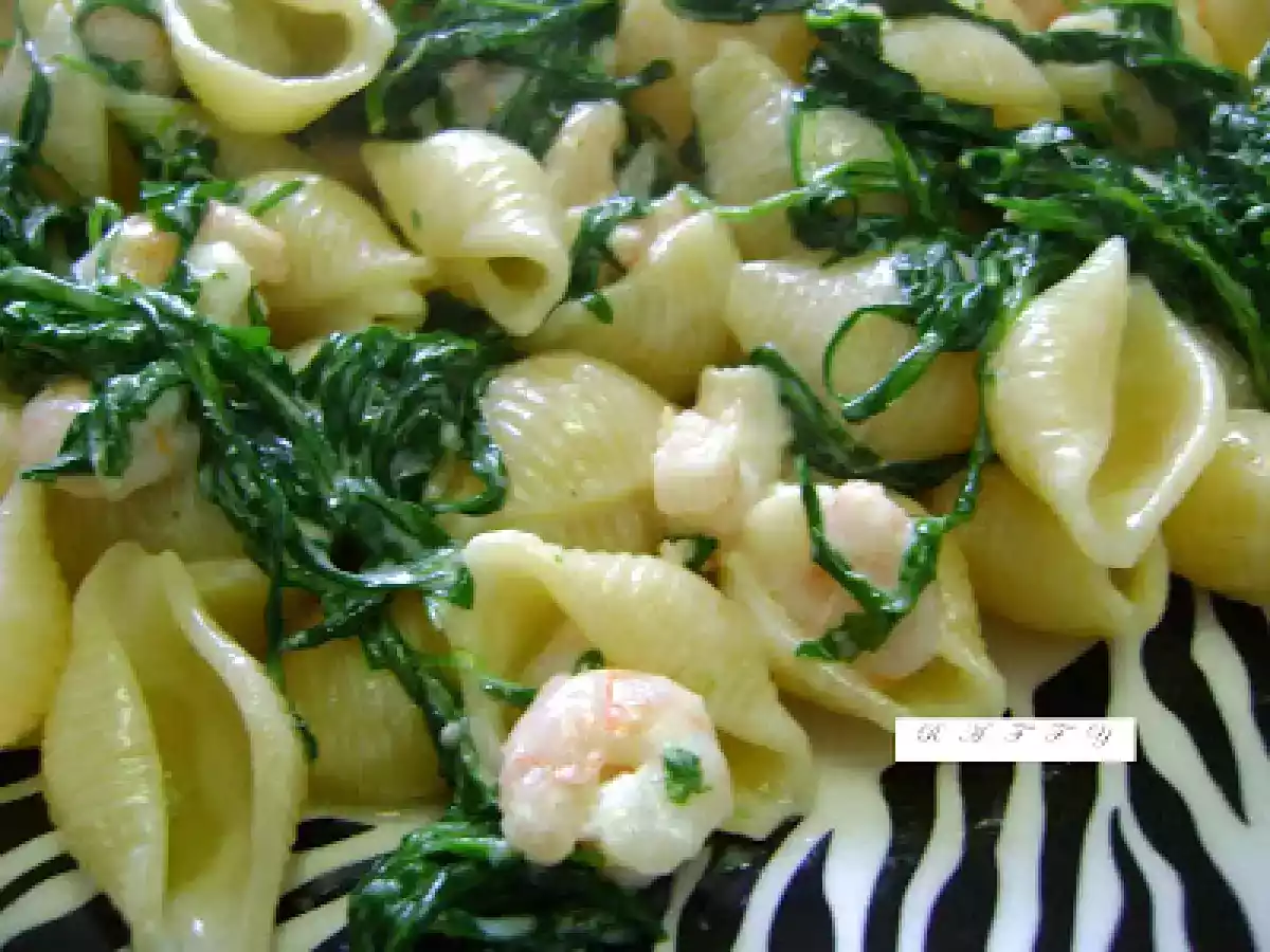 Conchiglie con rucola, gamberetti e panna PrecedenteProssimo Portata principalefacile35 min Invia questa ricetta ad un amico Stampa la ricetta Contatta l'autore della Ricetta Pubblica la foto di questa ricetta Ingredienti 2 180 g di conchiglie 180 g di gamberetti surgelati 100 g di rucola 80 g di panna fresca 1 cucchiaio di parmiggiano 1 spicchio d'aglio olio sale
