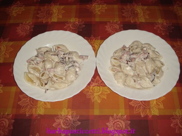 Conchiglie wurstel di tacchino e pollo con radicchio.