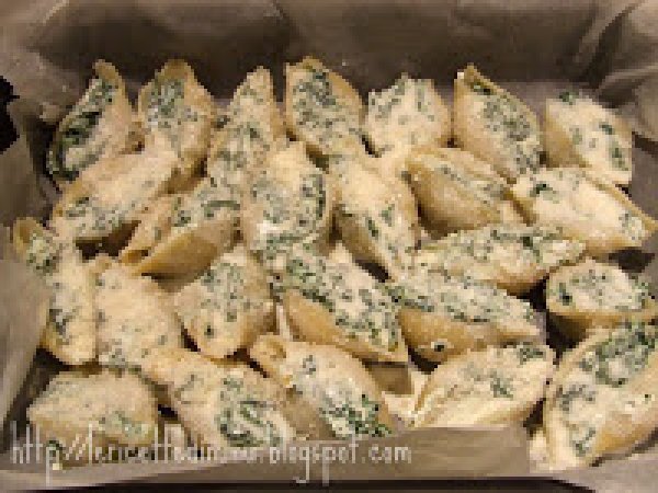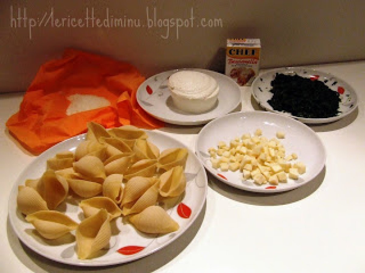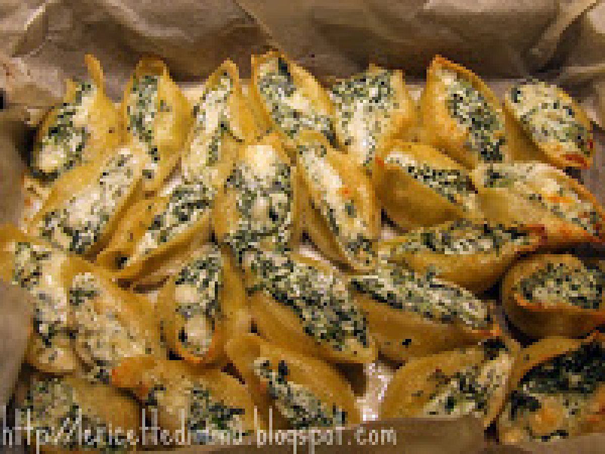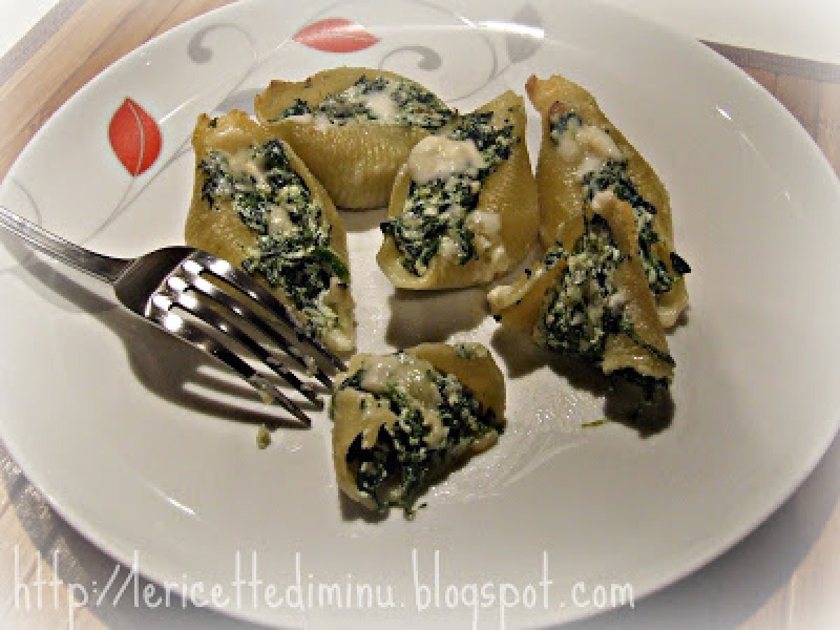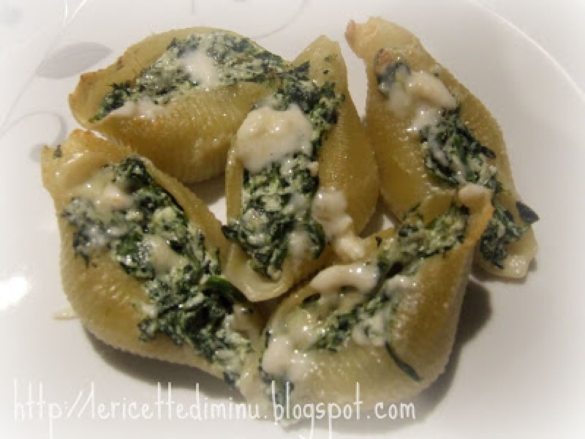 Conchiglioni ripieni con spinaci e ricotta vota adesso PrecedenteProssimo Portata principalefacile55 min Invia questa ricetta ad un amico Stampa la ricetta Contatta l'autore della Ricetta Pubblica la foto di questa ricetta Ingredienti 4 24 conchiglioni 250 g di ricotta 250 g di spinaci 100 g di provola o scamorza a cubetti 200 ml di besciamella 2 cucchiai di pinoli 1 uovo 4 cucchiai di parmigiano grattugiato sale e pepe q.b.