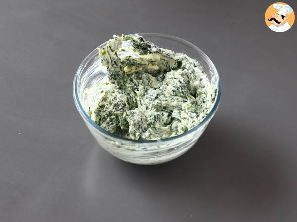 Ora versate gli spinaci in un colino e togliete più liquido possibile aiutandovi con un cucchiaio. Poi metteteli in una ciotola (se volete potete sminuzzarli con un coltello) e aggiungete la ricotta. Quindi mescolate per bene.
