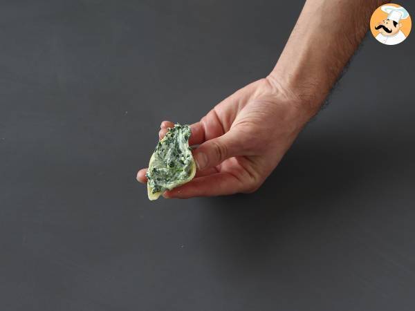 Scolate la pasta al dente (delicatamente per evitare che i conchiglioni si rompano), metteteli in un piatto e ungeteli con un filo d'olio. Quando si saranno intiepiditi iniziate a farcirli con il composto a base di ricotta e spinaci utilizzando un cucchiaio oppure un sac à poche.