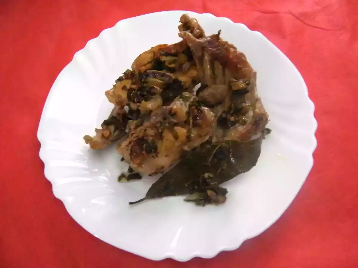 - In una casseruola larga e bassa lasciate appassire tutti gli odori minuzzati con un fondo d'olio, quindi unite il coniglio e fatelo leggermente rosolate da entrambi i lati. A questo punto aggiungete il vino, che dovrà coprire completamente o quasi tutti i pezzi.