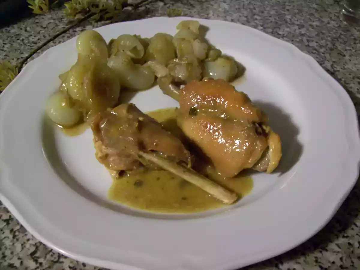 Coniglio alla birra con cipolline al balsamico