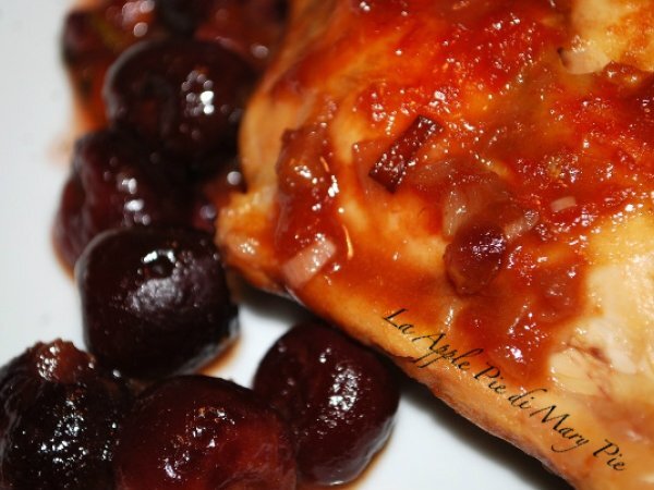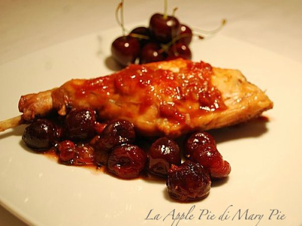 Coniglio arrosto alle ciliegie (o alle prugne secche) vota adesso PrecedenteProssimo Portata principalemedia1 h 20 m Invia questa ricetta ad un amico Stampa la ricetta Contatta l'autore della Ricetta Pubblica la foto di questa ricetta Ingredienti 6 1 coniglio nostrano di 1,5 kg tagliato in pezzi 350 g ciliegie (o 300 g prugne secche) 250 g brodo di pollo (o brodo di dado) 250 g di vino rosso (1/2 litro, se si fa la versione alle prugne) 50 g farina 30 g burro 4 cipolle grosse 3 pomodori 3 spicchi d'aglio 1 cucchiaio concentrato di pomodoro 2 cucchiai olio extravergine di oliva 2 cucchiai di Porto 1 mazzetto aromatico (in assenza di specifiche io ho usato rosmarino, timo e alloro) 2 scorze di arancia non trattata 6 rametti di prezzemolo tritati sale pepe