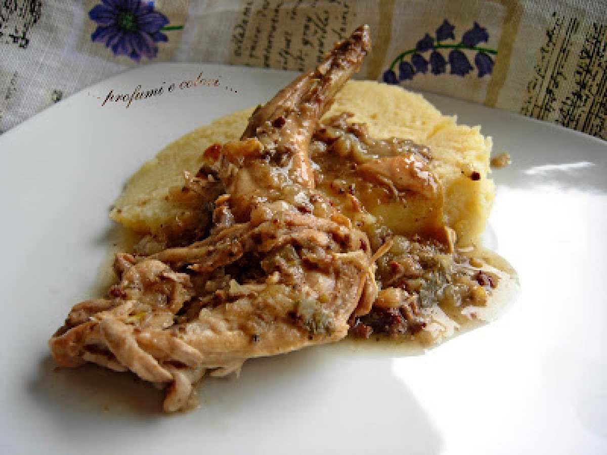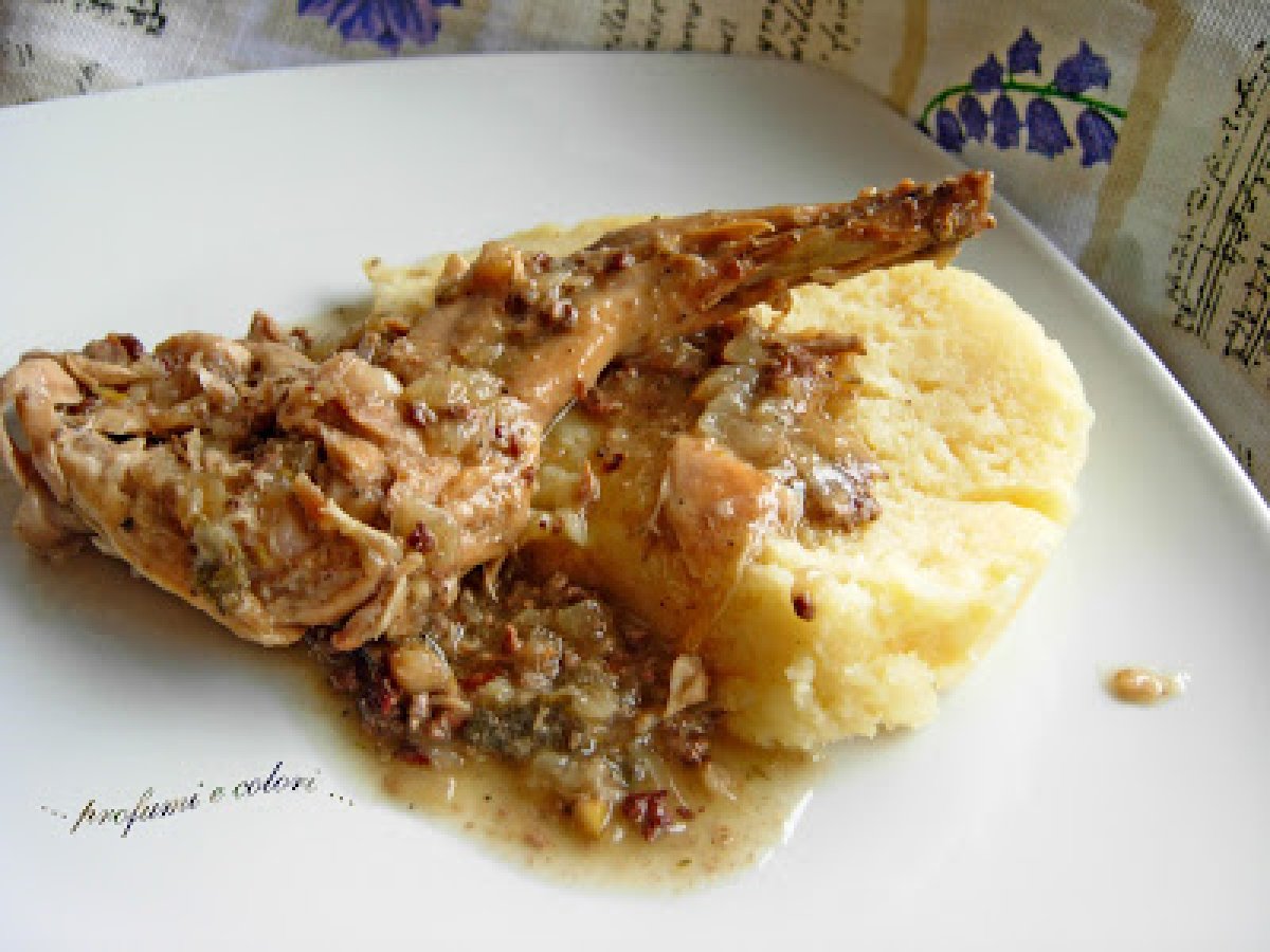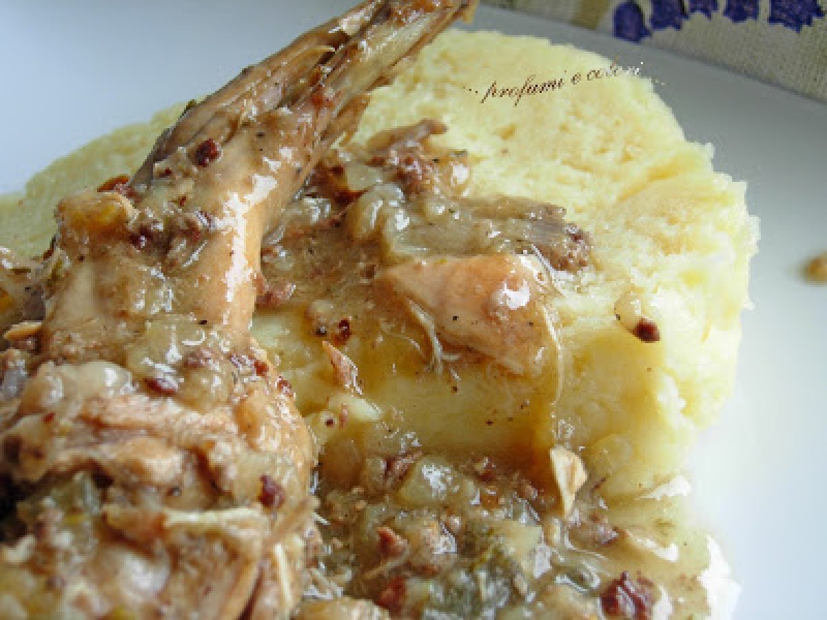 Coniglio con polenta di patate vota adesso PrecedenteProssimo Portata principalefacile1 h 5 m1148 Kcal Invia questa ricetta ad un amico Stampa la ricetta Contatta l'autore della Ricetta Pubblica la foto di questa ricetta Ingredienti 2 Coniglio intero vino bianco cipolla salvia alloro timo cannella chiodi garofano in polvere scorzette limone sale pepe olio burro patate farina bianca burro sale