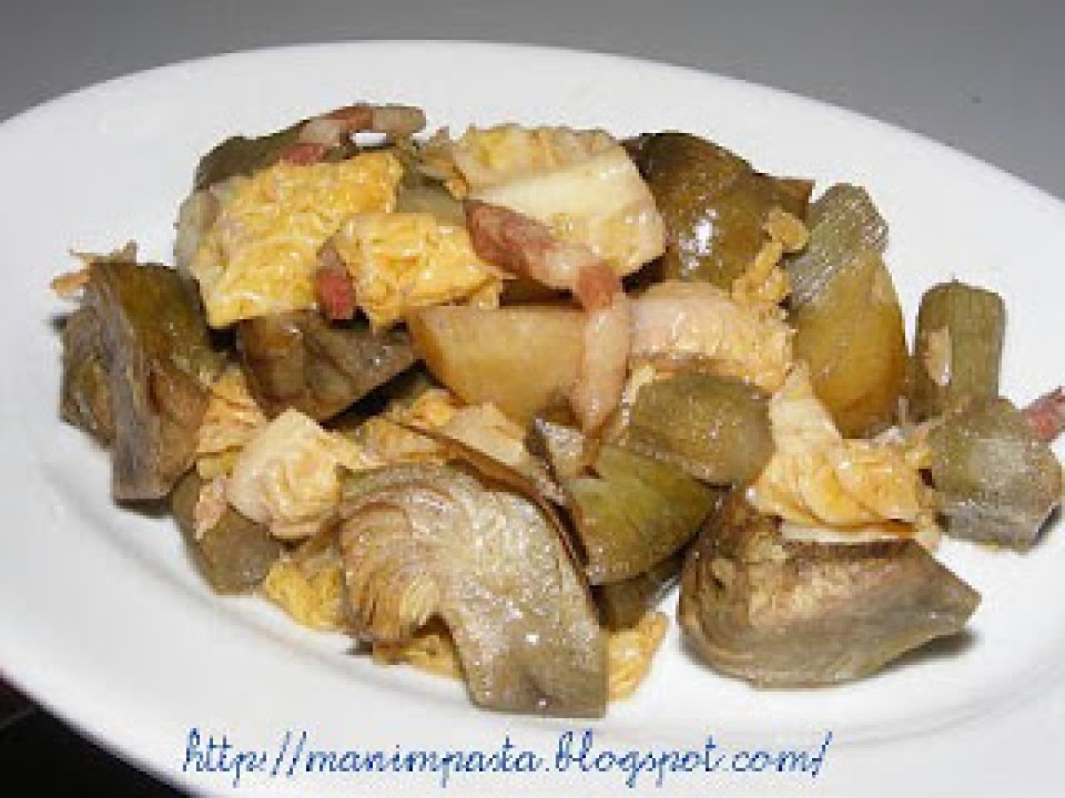Contorno di carciofi, patate, cavolo verza e pancetta Portata principalefacile50 min365 Kcal Invia questa ricetta ad un amico Stampa la ricetta Contatta l'autore della Ricetta Pubblica la foto di questa ricetta Ingredienti 2 tre carciofi del cavolo verza due patate pancetta affumicata cipolla tritata olio extravergine di oliva vino bianco o brodo di carne per bagnare