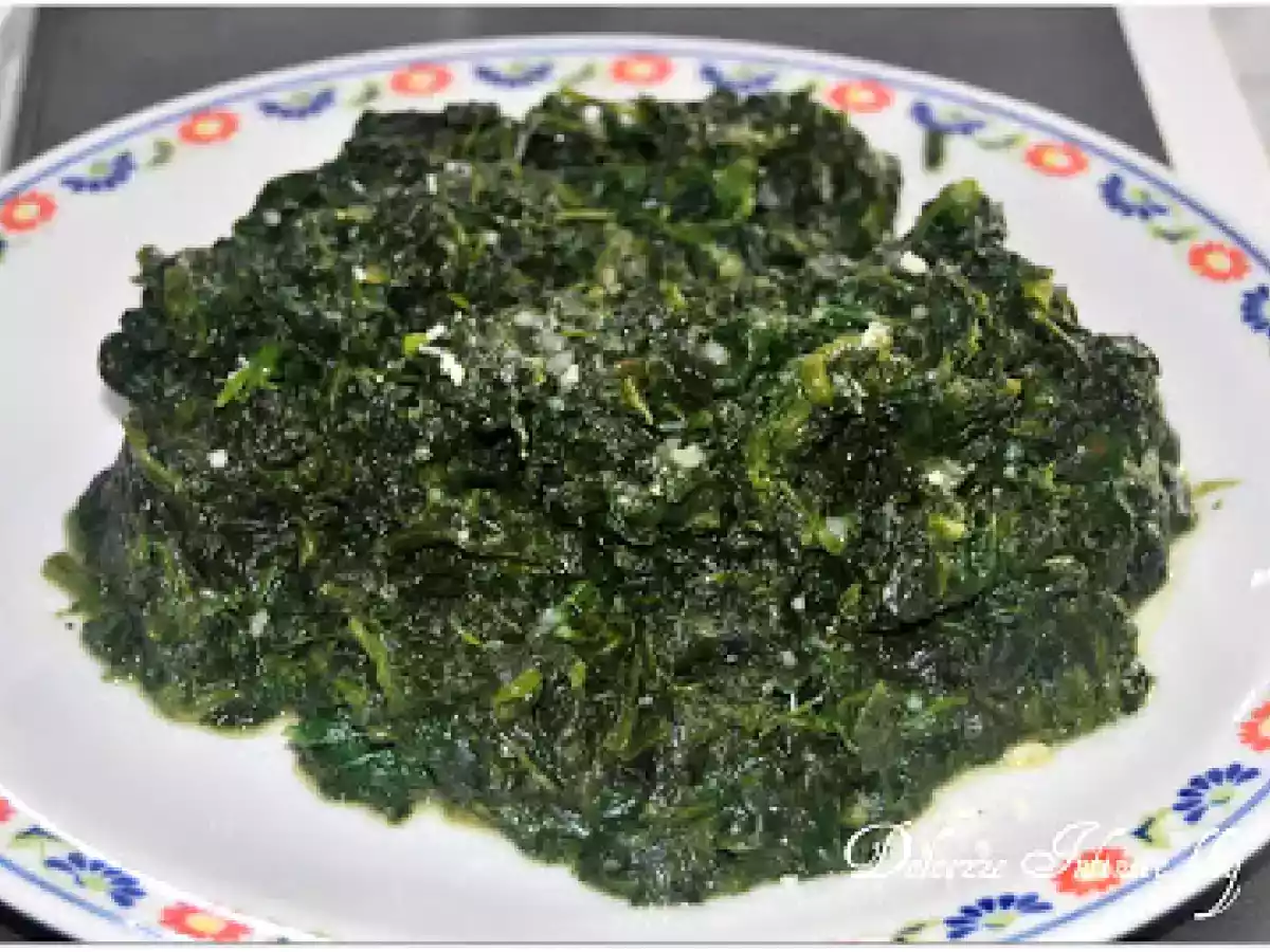 Contorno: spinaci in padella Portata principalefacile35 min Invia questa ricetta ad un amico Stampa la ricetta Contatta l'autore della Ricetta Pubblica la foto di questa ricetta Ingredienti 2 1 kg di spinaci 3 cucchiai di olio extravergine di oliva 3 spicchi di aglio in camica un ciuffetto di prezzemolo tritato due pizzichi di noce moscata due manciate di formaggio grattugiato 20 g di burro sale e pepe