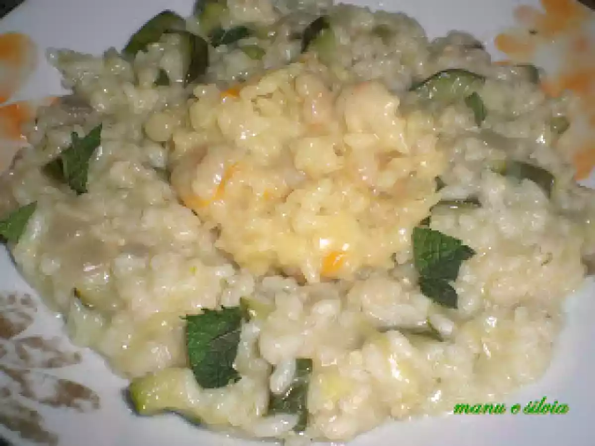 Corona di risotto alle zucchine con cuore di gamberetti all'arancia Portata principalefacile30 min Invia questa ricetta ad un amico Stampa la ricetta Contatta l'autore della Ricetta Pubblica la foto di questa ricetta Ingredienti 4 477g riso vialone nano 300g gamberetti sgusciati 2 zucchine 2 dadi vegetali 1 arancia scorza aglio in polvere 1 cucch.no bottarga di muggine menta fresca 2 cucch.ni mascarpone brandy vino bianco ½ cipolla rossa olio evo sale