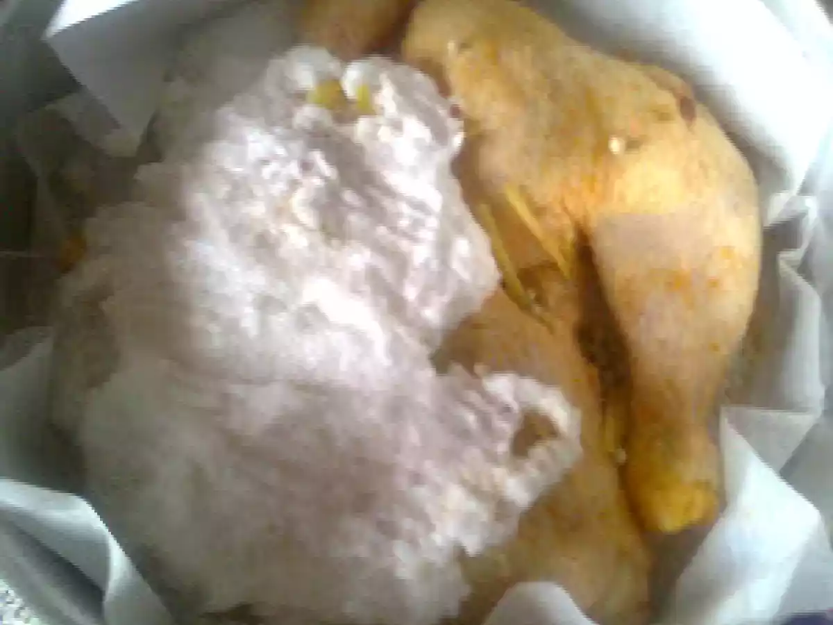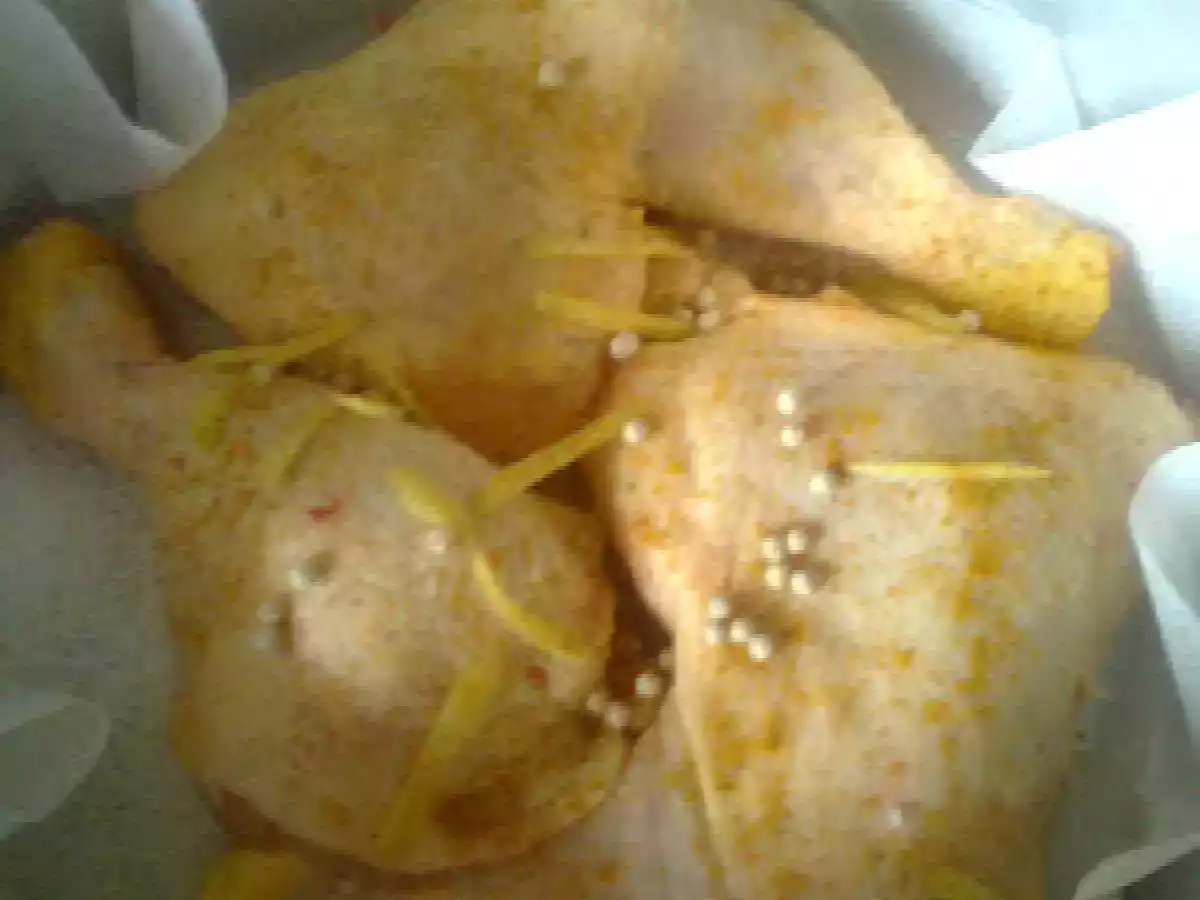 Cosciotti di pollo in crosta di sale al limone vota adesso PrecedenteProssimo Portata principalefacile1 h 10 m2581 Kcal Invia questa ricetta ad un amico Stampa la ricetta Contatta l'autore della Ricetta Pubblica la foto di questa ricetta Ingredienti 4 3 Cosciotti di pollo ½ kg di sale doppio 1 albume Grani di pepe bianco Pepe nero Curry Grasso di lardo Buccette di limone tritate Costo stimato: 15.87Euros€ (3.97€/Porzioni)