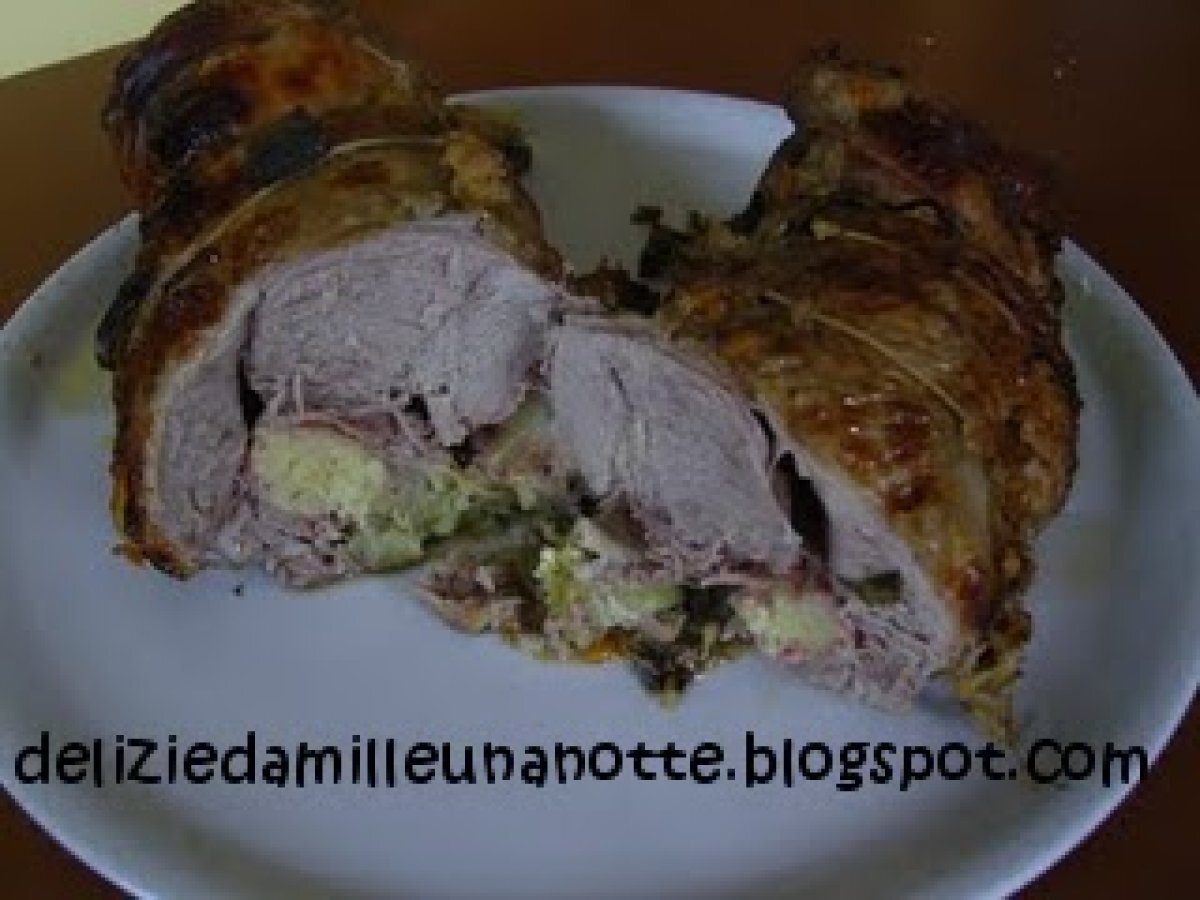 Cosciotto di agnello ripieno Portata principalefacile1 h 20 m Invia questa ricetta ad un amico Stampa la ricetta Contatta l'autore della Ricetta Pubblica la foto di questa ricetta Ingredienti 10 1 cosciotto di agnello dissossato ed aperto bene prosciutto cotto 150 g 4 carciofi 50 g di parmiggiano 70 g di mollica di pane sbriciolata 1 uovo prezzemolo 1 costa di sedano 1 cipolla 1 carota 1 bicchiere di vino bianco olio extravergine d'oliva