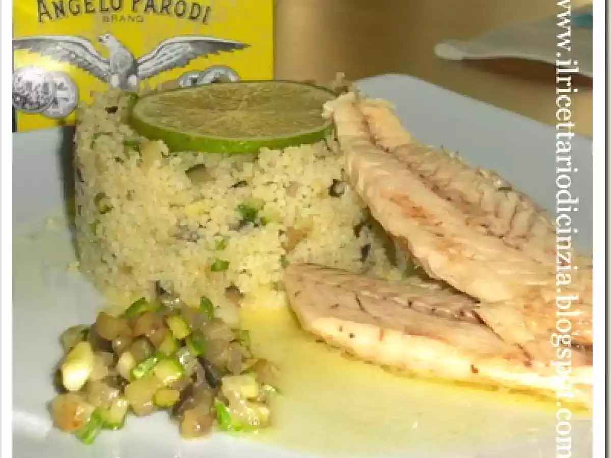 Cous cous con brunoise di zucchine e melanzane e sgombro angelo parodi