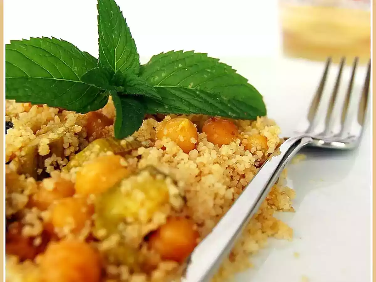 Cous cous con ceci e zucchine alla menta Portata principalefacile35 min Invia questa ricetta ad un amico Stampa la ricetta Contatta l'autore della Ricetta Pubblica la foto di questa ricetta Ingredienti 3 cous cous integrale, 280 gr ceci, 200 gr zucchine verdi, 4 cipollotti, 2 uvetta passa, 2 manciate brodo vegetale, 1 litro abbondante spezie miste marocchine, 1 cucchiaio menta, 10 foglie olio extravergine di oliva sale