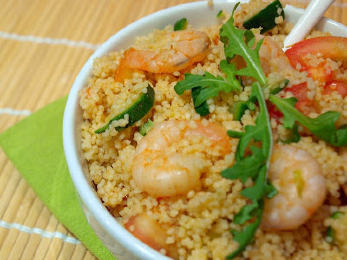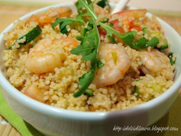 Cous cous gamberetti & verdure vota adesso PrecedenteProssimo Portata principalefacile50 min587 Kcal Invia questa ricetta ad un amico Stampa la ricetta Contatta l'autore della Ricetta Pubblica la foto di questa ricetta Ingredienti 2 200 gr di cous cous precotto 250 ml di brodo vegetale 2 zucchine 2 pomodori da insalata 20 gamberetti 1/2 porro rucola 1 carota 1 spicchio di aglio sale pepe 1 pizzico di peperoncino 2 pizzichi di curry 1 pizzico di paprika rossa 1 pizzico di cardamomo in polvere 2 pizzichi di curcuma 1 pizzico di coriandolo olio di extravergine di oliva Costo stimato: 15Euros€ (7.5€/Porzioni)