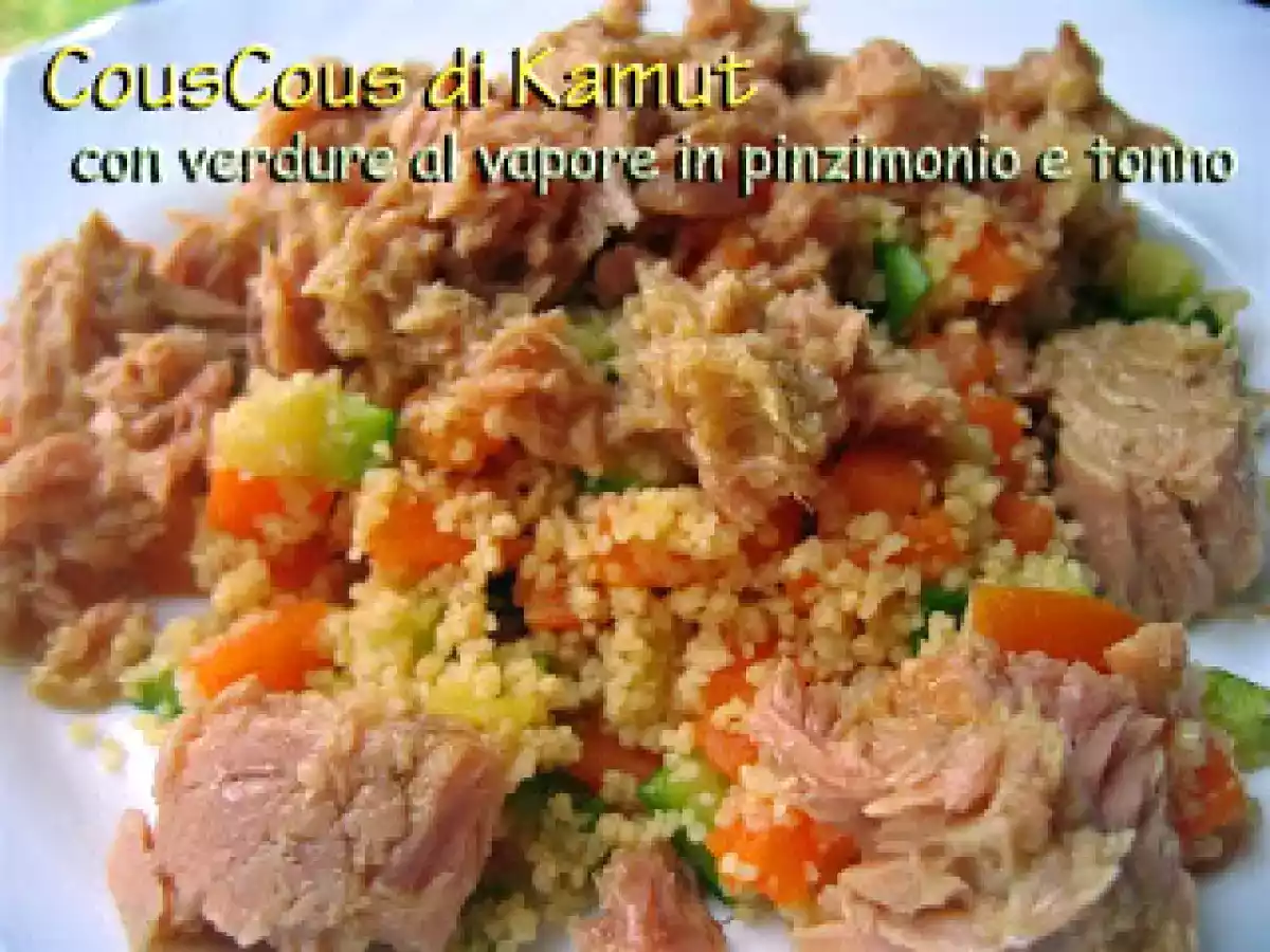 Couscous di kamut con verdure al vapore in pinzimonio e tonno