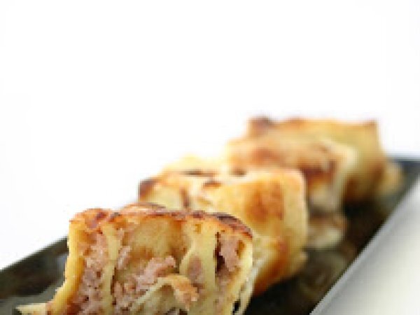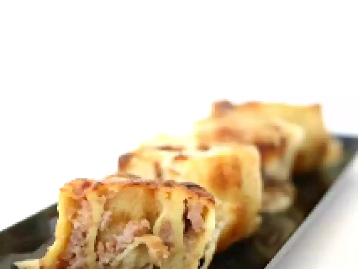 Crepes alla salsiccia vota adesso Portata principalefacile45 min894 Kcal Invia questa ricetta ad un amico Stampa la ricetta Contatta l'autore della Ricetta Pubblica la foto di questa ricetta Ingredienti 4 8 crepes 4 fette di prosciutto cotto 4 cucchiai di Parmigiano Reggiano grattugiato 100 g di formaggio facile a fondere 4 salsicce fresche 4 cucchiai di besciamella 1 uovo burro olio extravergine di oliva sale e pepe