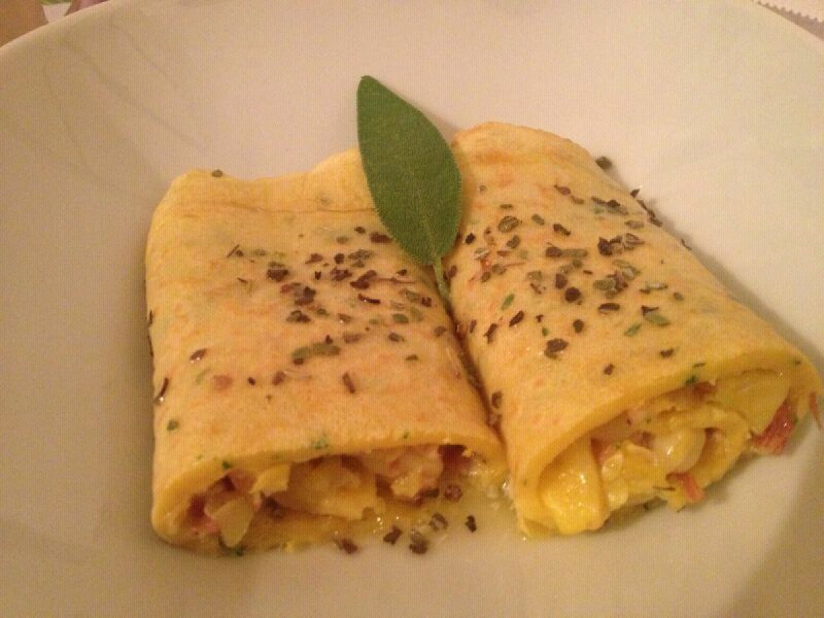 Crepes salate sfiziose Portata principalemedia2 ore Invia questa ricetta ad un amico Stampa la ricetta Contatta l'autore della Ricetta Pubblica la foto di questa ricetta Ingredienti 4 125g farina 250ml latte 2 uova 300ml besciamella 2 zucchine 8 fette speck 60g formaggio filante (es:galbanino) 30g grana salvia
