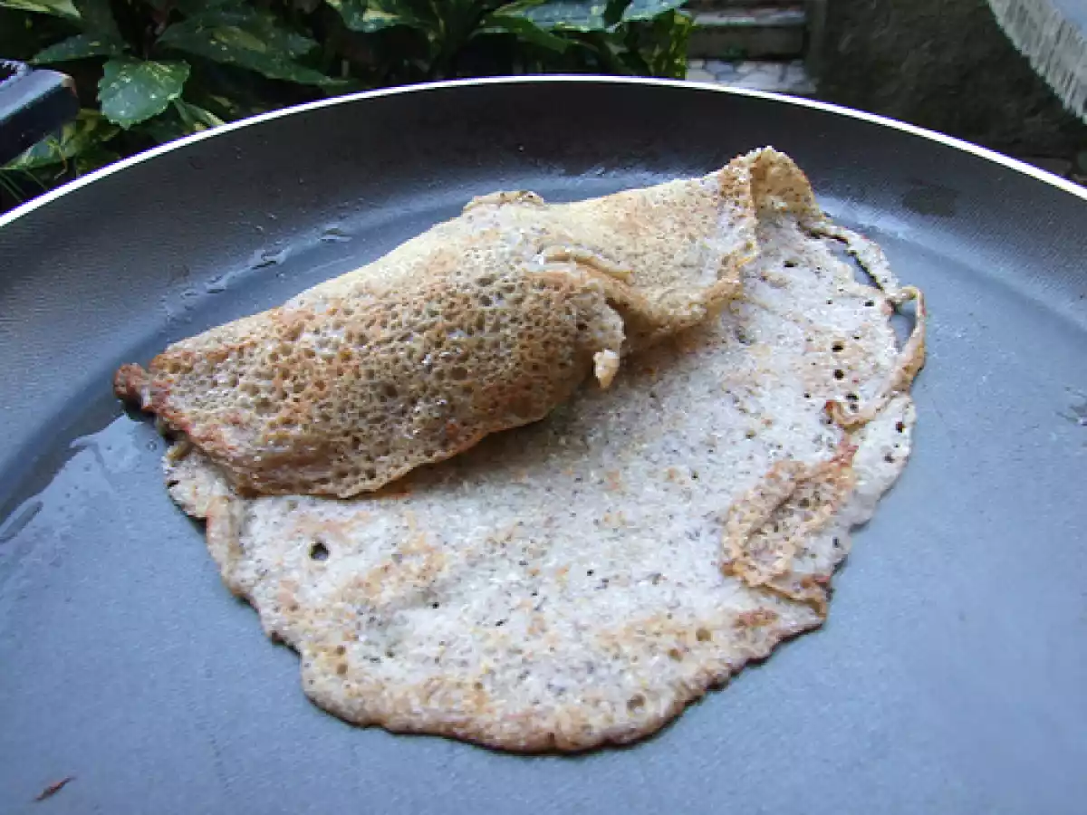 Crespelle al grano saraceno con bitto e spinaci vota adesso PrecedenteProssimo Portata principalefacile50 min Invia questa ricetta ad un amico Stampa la ricetta Contatta l'autore della Ricetta Pubblica la foto di questa ricetta Ingredienti 4 250 g di farina di grano saraceno 1 cucchiaio di farina 00 1 / 2 litro di latte 1 / 2 cucchiaino di sale 40 g di burro salato eventualmente, 1 tuorlo d'uovo Per il ripieno: 100 g di spinaci, lessati e ben strizzati 300 g di Bitto 2 fette di pancarrè bagnate nel latte parmigiano grattugiato 70 g di burro