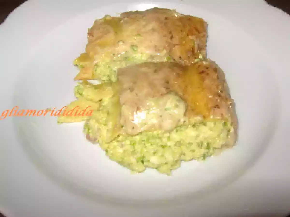 Crespelle alle zucchine e speck con salsa di funghi porcini Portata principalefacile1 ora Invia questa ricetta ad un amico Stampa la ricetta Contatta l'autore della Ricetta Pubblica la foto di questa ricetta Ingredienti 4 Per le crespelle : 250 g di latte 130 g di farina bianca 40 g di burro circa 20 grammi per la teglia 2 uova sale Per il ripieno : 2 zucchine 200 ml besciamella 100 g ricotta romana 2 uova 100 g emmenthaler grattugiato 40 g parmigiano grattugiato sale pepe 2 fettine di speck