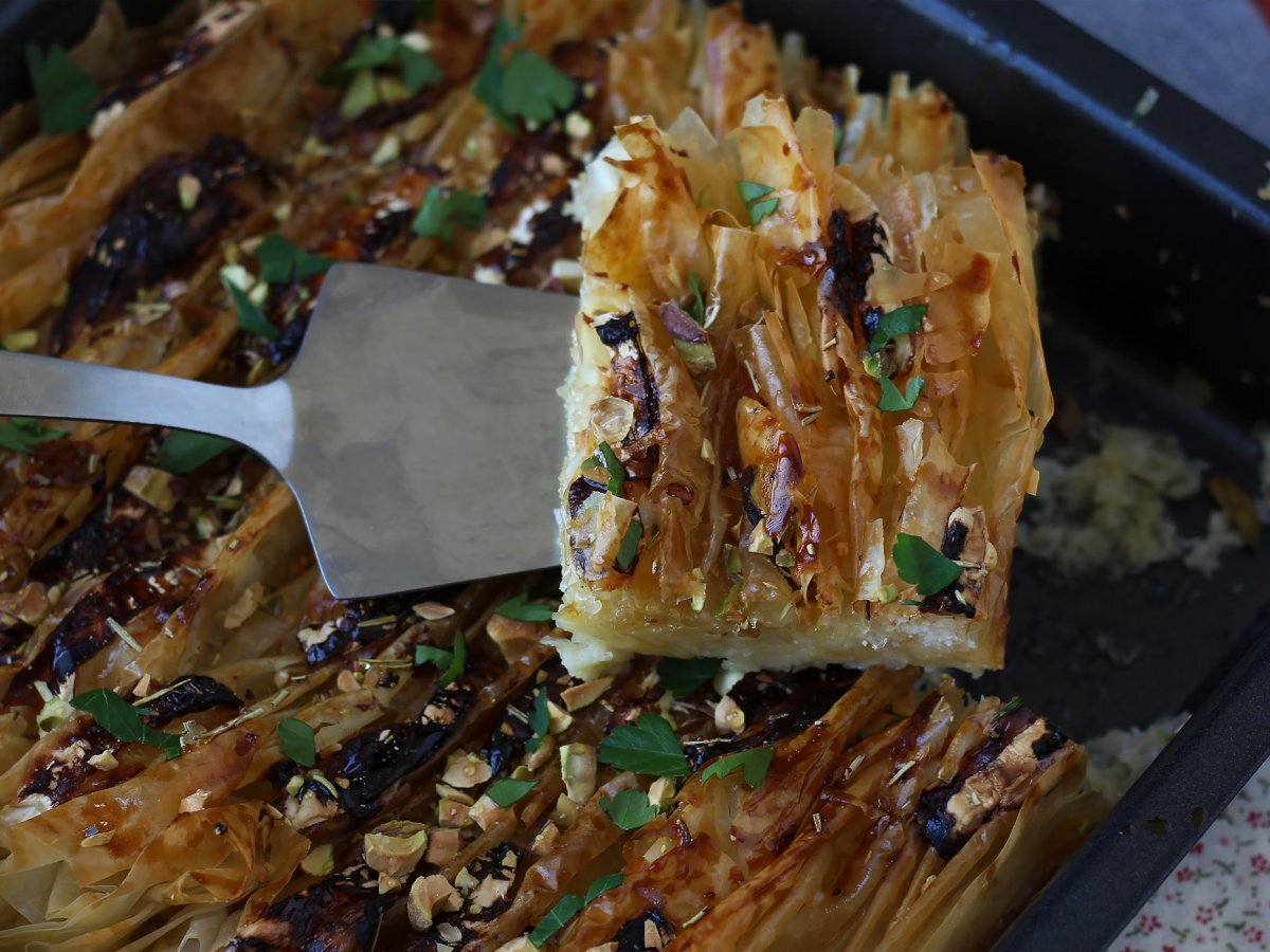 Crinkle cake caprino e miele, la gustosa torta salata vegetariana con la pasta fillo